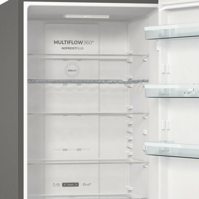 технология IonAir и система MultiFlow 360°, режим "эко", металлическая полка для бутылок