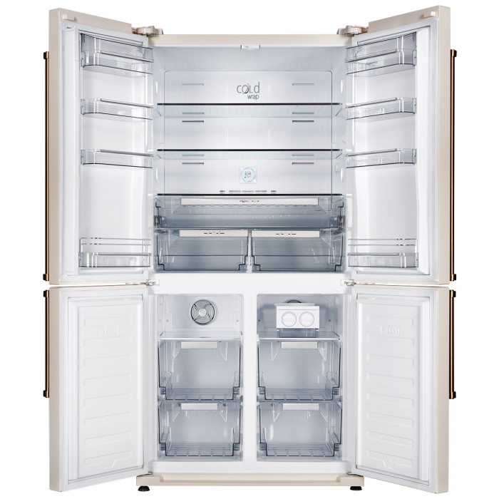 Тип: холодильник Side by Side; Морозильная камера: снизу; Размораживание холодильной камеры: No Frost; Размораживание морозильной камеры: No Frost; Тип управления: электронное, сенсорное; Мощность замораживания: 13 кг/сутки; Дисплей: есть; Общий объем: 560 л;