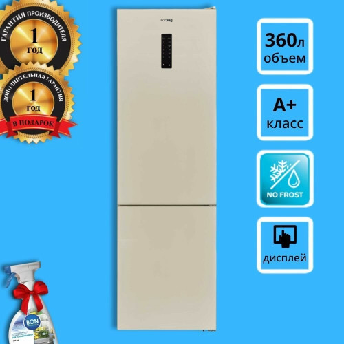 Система авторазморозки «No Frost»Система «No Frost» избавляет вас от необходимости постоянно размораживать камеру благодаря автоматической системе удаления инея. Вместо разморозки можно заняться приятными и полезными делами! Динамическое охлаждениеСпециальный вентилятор в холодильной камере обеспечивает перемешивание воздуха и соответственно равномерное распределение температуры. Также динамическая система способствует уменьшению, смешиванию запахов в холодильнике и быстрому охлаждению большого количества продуктов. Цифровой дисплейВ данном приборе есть электронный дисплей, на экране которого вы можете увидеть, какая температура сейчас установлена в вашем холодильнике. Светодиодное освещение «LED Light»Светодиодное освещение является самым экономичным и эффективным. Яркое и равномерное освещение камеры помогает моментально найти необходимый продукт, прочитать состав и рекомендации по срокам его хранения, не прибегая к дополнительной подсветке кухонного пространства. Зона свежестиДополнительный контейнер, расположенный рядом с зоной морозильного отделения, устанавливает уникальный микроклимат, который в сочетании с пониженной температурой позволяет дольше сохранять вкус, питательные вещества и свежесть большинства видов продуктов, в особенности фруктов и овощей. Функция интенсивного охлаждения «Super Cool»Если вам нужно охладить большое количество продуктов после посещения магазина или при подготовке к семейному торжеству, тогда вам поможет функция «Super Cool»! Она установит необходимую температуру внутри холодильника, чтобы продукты были охлаждены моментально! Функция быстрого замораживания «Super Freeze»Функция «Super Freeze» чаще используется во время сезона заготовок для заморозки ягод, грибов и других сезонных приобретений. Моментальная заморозка продуктов сохраняет их питательные вещества, внешний вид и витамины. Перенавешивание дверцыВозможность самостоятельно перевешивать двери позволит вам выбрать сторону, в которую будет открываться холодильник. Дверцу можно перевесить даже самим, без обращения в сервисный центр. Звуковая индикация открытой двериЕсли дверь холодильника осталась открытой или закрыта недостаточно плотно в течение нескольких минут, индикация сообщит вам об этом при помощи звукового сигнала. Это позволит предотвратить повышение температуры в холодильнике и порчу продуктов. Высокий класс энергоэффективностиБлагодаря использованию высокоэффективных компрессоров и самых современных хладагентов, все холодильники Korting имеют самые высокие классы энергопотребления: A и A+. Это позволяет существенно снизить годовые затраты на электроэнергию и меньше воздействовать на окружающую среду! Хранение при отключенном питанииДаже если прибор будет отключен от электроэнергии, в морозильной камере будет поддерживаться достаточно низкая температура, приемлемая для хранения скоропортящихся продуктов. Основные: Тип: Отдельностоящая техникаТип продукта: ХолодильникЦвет: БежевыйЦвет боковой поверхности: БежевыйВарианты цвета: БежевыйФронтальная поверхность: МеталлУправление: ЭлектронноеДисплей: Цифровой дисплейОбщий объем (л):360Холодильная камера (л):266Морозильная камера (л):94Охлаждение холодильной камеры: ДинамическоеРазмораживание холодильной камеры: No FrostЗадняя стенка Cold Metal: НетИнтенси