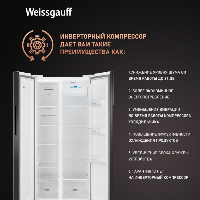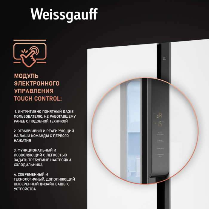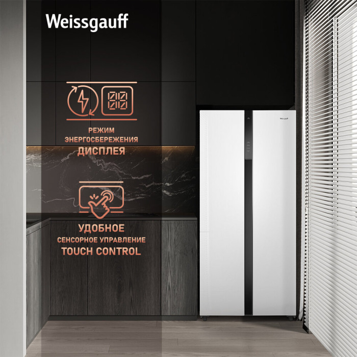 Холодильник Weissgauff WSBS 500 Inverter NoFrost White Glass