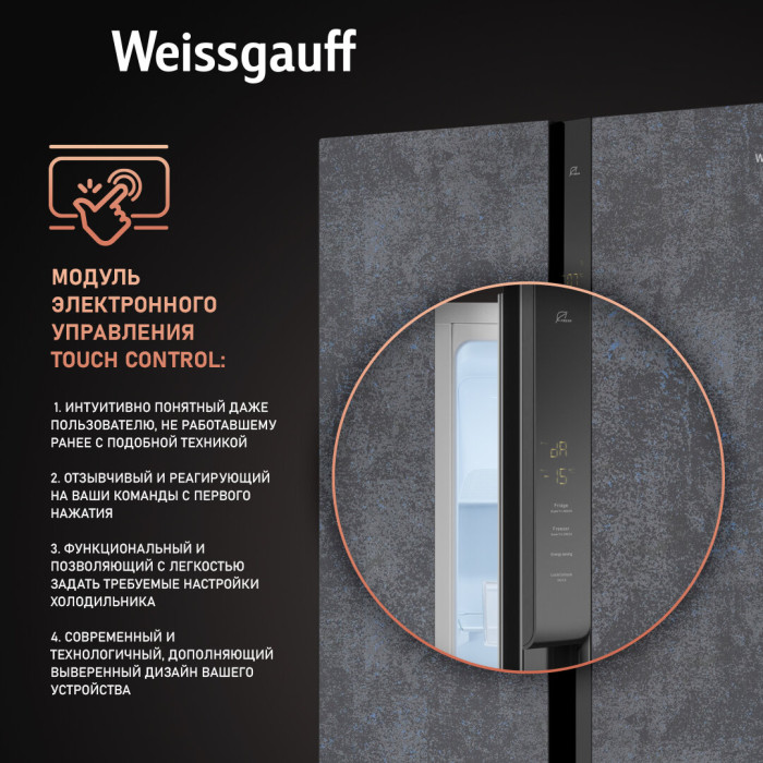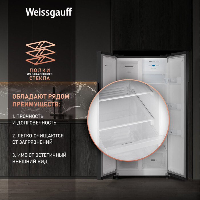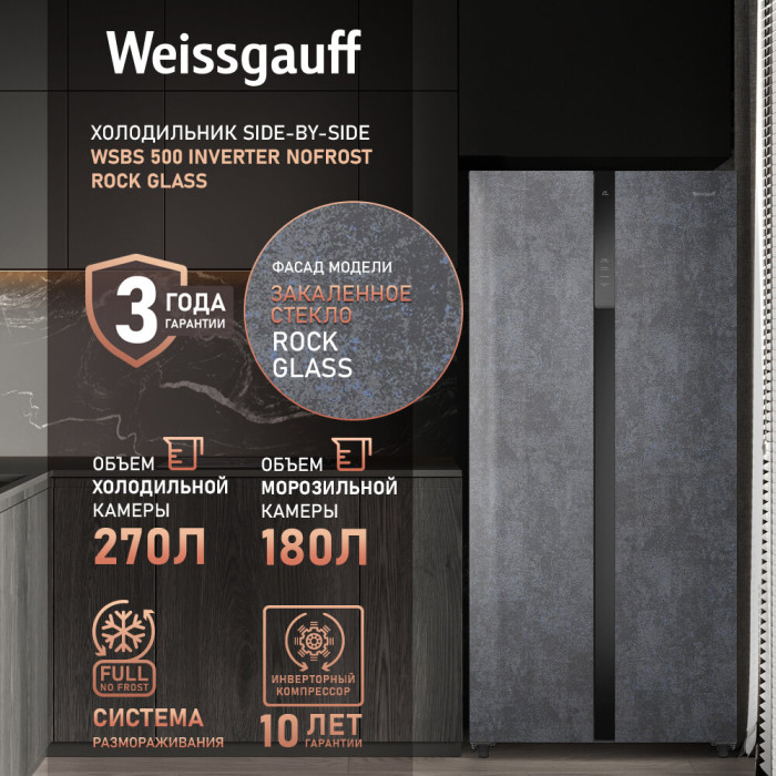 Холодильник Weissgauff WSBS 500 Inverter NoFrost Rock Glass