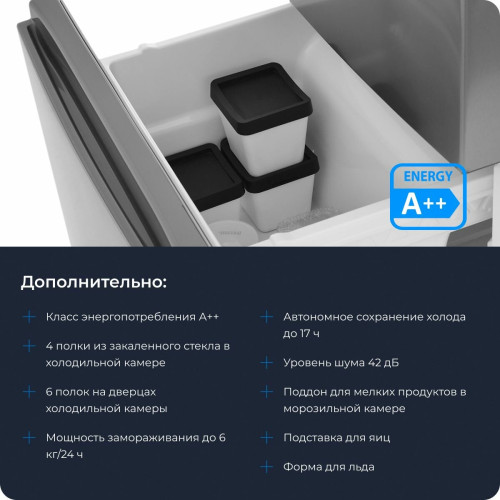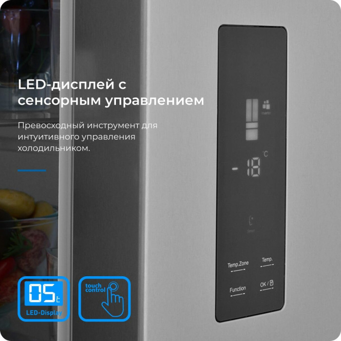 Full No Frost, Дисплей, Зона свежести, Скрытые ручки, Суперзаморозка, Суперохлаждение, Часы