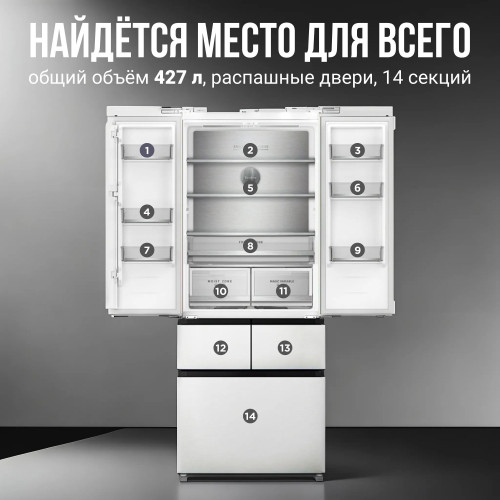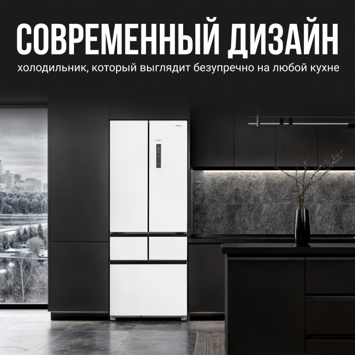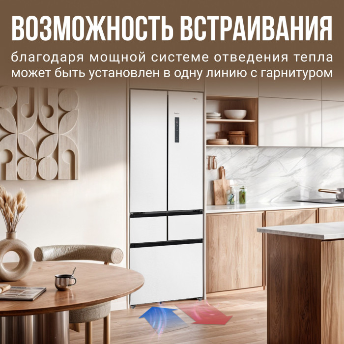 Двухкамерный холодильник TESLER RFD-427BI – это сочетание безупречного стиля с новейшими разработками в области бытовой техники. Предлагая широкий выбор настроек и режимов, этот холодильник остаётся простым в управлении, и поможет сохранить свежесть продуктов надолго. Совмещает преимущества отдельно стоящих И встраиваемых холодильников. Устройство обладает уникальным дизайном, который позволяет частично встраивать его в кухонный гарнитур: глубина корпуса составляет 60 см, поэтому он может быть установлен в одну линию со стандартной кухонной мебелью. Благодаря инновационной системе охлаждения расстояние от боковых сторон до корпусной мебели может составлять всего 5 мм. Таким образом исключается перегрев, что способствует продлению срока службы устройства. Продуманная конструкция обеспечивает минимальный зазор при открытии дверей холодильника, что делает удобным его использование в ограниченных пространствах. Равномерное И быстрое охлаждение C технологией METAL COOLING. Встроенная в заднюю стенку пластина из алюминия эффективно распределяет холод, обеспечивая стабильную температуру внутри холодильной камеры. Это позволяет долго сохранять свежесть продуктов даже при частом открывании дверцы. Благодаря этой технологии в холодильной камере исключаются сильные перепады температуры, что позволяет увеличить сроки хранения продуктов. Инновационная технология Metal Cooling поддерживает стабильную работу холодильника, а стильный дизайн пластины подарит вам эстетическое удовольствие от пользования устройством. Инверторный компрессор. Постоянство температуры и влажности внутри холодильника гарантировано — инверторный компрессор работает эффективно, не создавая лишнего шума. Высокий класс энергоэффективности A+ позволит сократить расходы на электроэнергию. Холодильник НЕ нужно размораживать.