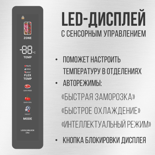 режимы «Быстрая заморозка», «Быстрое охлаждение», «Интеллектуальный»