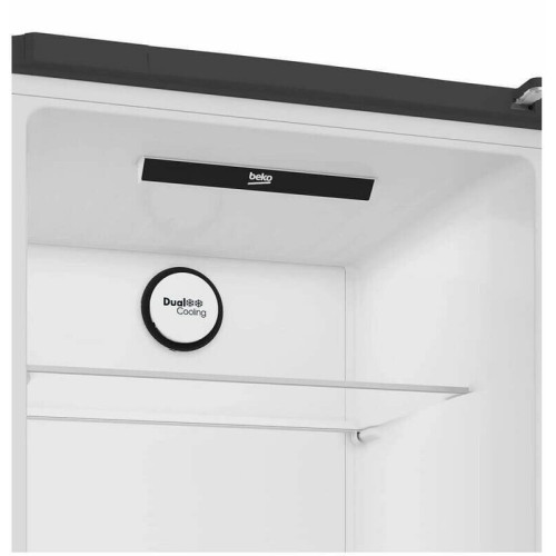 Двухкамерный холодильник серого цвета оснащен двухконтурной системой охлаждения NoFrost Dual Cooling (Ноу Фрост), которая обеспечивает раздельное охлаждение холодильной и морозильной камер, в результате чего запахи не смешиваются, лед на стенках не образуется, и холодильник не нужно размораживать.
