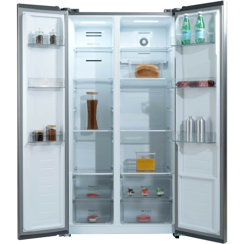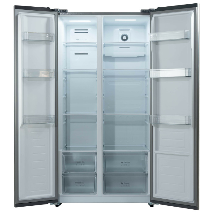 Тип: холодильник Side by Side; Морозильная камера: сбоку; Размораживание холодильной камеры: No Frost; Размораживание морозильной камеры: No Frost; Тип компрессора: инверторный; Тип управления: электронное; Мощность замораживания: 10 кг/сутки; Дисплей: есть;