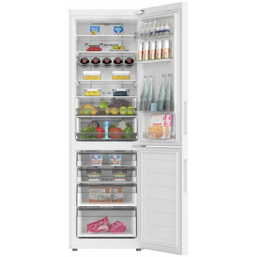 Технические особенности модели позволяют забыть о разморозке и сроке работы компрессора: система No Frost плюс smart компрессор с гарантией на 12 лет – выгодная покупка для комфортного использования. Оптимизируйте холодильник под свои потребности: используйте складную полку для вина, регулируйте температуру и влажность, включайте режим Отпуск, чтобы экономить электроэнергию и поддерживать работу только морозильной камеры. Особенности: 0° Zone Регулируемая влажность и температура около 0 градусов — специальная зона для качественного хранения мяса, рыбы, морепродуктов, сыров и молочных продуктов. Технология MultiFlow Равномерное распределение воздушных потоков по холодильному отделению и точное поддержание оптимальной температуры для хранения продуктов. Total NoFrost Никакого инея и льда в холодильнике. Благодаря постоянной циркуляции холодного воздуха, в холодильном и морозильном отделении создаются оптимальные условия хранения продуктов. T.ABT инновационная технология антибактериальной обработки Wi-Fi управление управление с помощью смартфона или планшета Складные полки вариативность внутреннего пространства холодильника Общие данные: Размеры: высота (см): 190.5 ширина (см): 59.5 глубина (см): 67.2 Общий объем/ Полезный объем: Холодильника (л): -/364 Холодильной камеры (вкл. зону свежести) (л): -/256 Морозильной камеры (л): -/108 Зона свежести: 21 л Тип управления: электронный Класс энергопотребления: A+ Климатический класс: SN-ST (от +10°C до +38°C) Количество компрессоров: 1 Годовое потребление энергии: 342 кВтч Цвет: белый Холодильное отделение: Полки из стекла: 4 Складная полка для вина Количество полок на двери: 4 Зона сохранения свежести Система No Frost (Frost Free, Ноу Фрост) Светодиодное освещение Функция суперохлаждения Ящики для овощей Морозильное отделение: Система No Frost (Frost Free, Ноу Фрост) Мощность замораживания: 12 кг/сутки Функция суперзамораживания Количество выдвижных ящиков: 4 Дополнительная информация: Покрытие: матовое Тип компрессора: Стандартный Удаленное управление через Wi-Fi Перенавешиваемые двери Передние/задние регулируемые ножки Smart компрессор Напряжение/Частота: 220-240 V / 50Hz Сигнал открытой двери Уровень шума дБ (А): 39 Функция Отпуск Вес: 80 кг