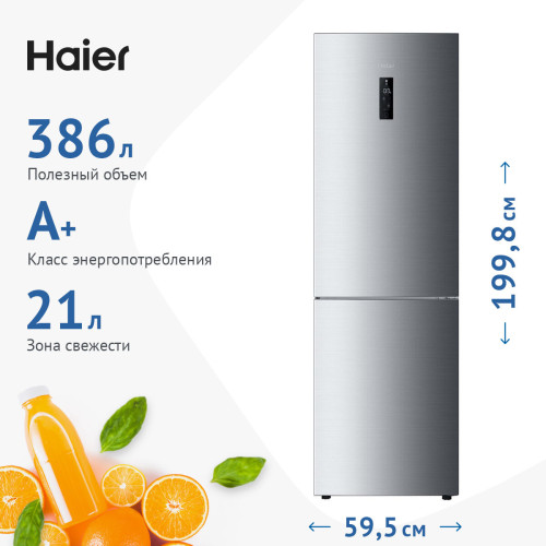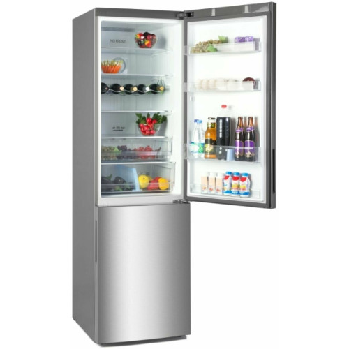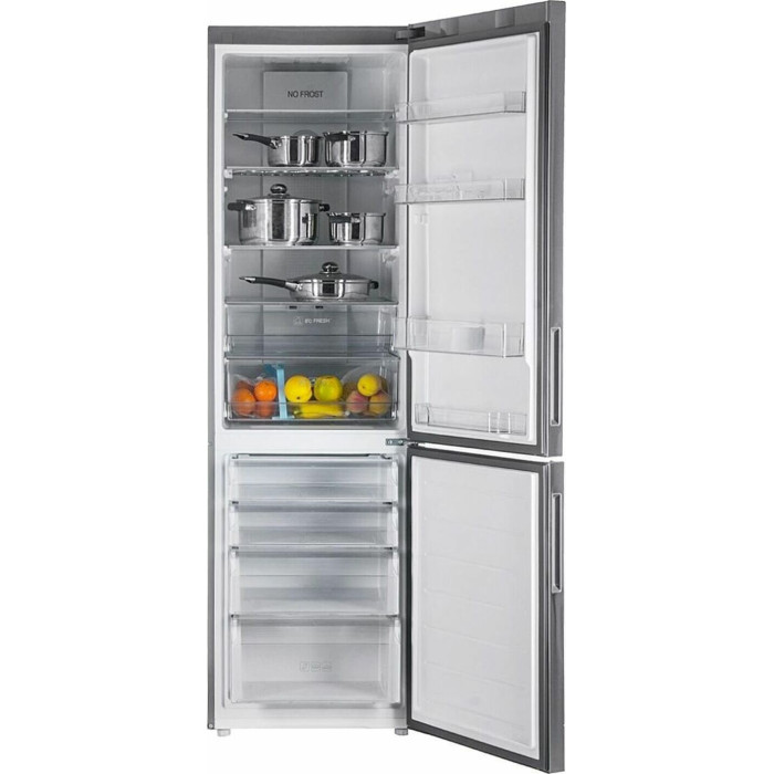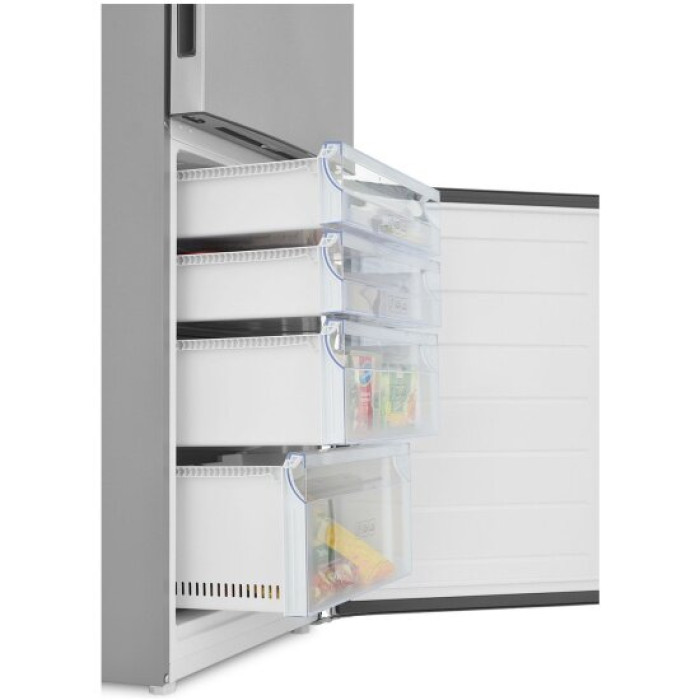 Двухкамерный холодильник с нижним расположением морозильной камеры Общие данные: Размеры: высота (см): 199,8 ширина (см): 59,5 глубина (см): 67,2 Общий объем/ Полезный объем: Холодильника (л): -/386 Холодильной камеры (вкл. зону свежести) (л): -/278 Морозильной камеры (л): -/108 Зона свежести: 21 л Тип управления: электронный Класс энергопотребления: A+ Климатический класс: SN-ST (от +10°С до +38°С) Количество компрессоров: 1 Годовое потребление энергии: 342 кВтч Цвет: нержавеющая сталь Холодильное отделение: Полки из закаленного стекла Количество полок на двери: 4 Складная полка Зона сохранения свежести Система No Frost (Frost Free, Ноу Фрост) Светодиодное освещение Функция суперохлаждения Антибактериальная защита Ящик для овощей Складная полка для бутылок Морозильное отделение: Система No Frost (Frost Free, Ноу Фрост) Мощность замораживания: 12 кг/сутки Функция суперзамораживания 4 ящика Дополнительная информация: Сигнал открытой двери Функция Отпуск Smart компрессор Уровень шума: 42 дБ Передние/задние регулируемые ножки Перенавешиваемые двери