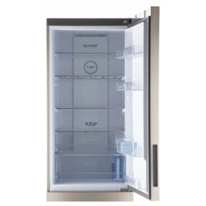 Общие данные: Размеры: высота (см): 199,8 ширина (см): 59,5 глубина (см): 67,2 Общий объем/ Полезный объем: Холодильника (л): -/386 Холодильной камеры (вкл. зону свежести) (л): -/278 Морозильной камеры (л): -/108 Тип управления: электронный Класс энергопотребления: A+ Климатический класс: SN-ST (от +10°С до +38°С) Количество компрессоров: 1 Годовое потребление энергии: 342 кВтч/год Цвет: золотистый Холодильное отделение: 5 полок из стекла Складная полка Количество полок на двери: 4 Зона свежести 0°С Система No Frost (Frost Free, Ноу Фрост) Внутреннее LED освещение 3Gen Функция суперохлаждения Антибактериальная система Ящик для овощей Складная полка для бутылок Морозильное отделение: Система No Frost (Frost Free, Ноу Фрост) Мощность замораживания: 12 кг/сутки Функция суперзамораживания Количество выдвижных ящиков: 4 Дополнительная информация: Сигнал открытой двери Уровень шума дБ: 42 Передние/задние регулируемые ножки Функция Отпуск Перенавешиваемые двери