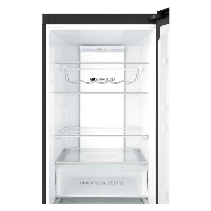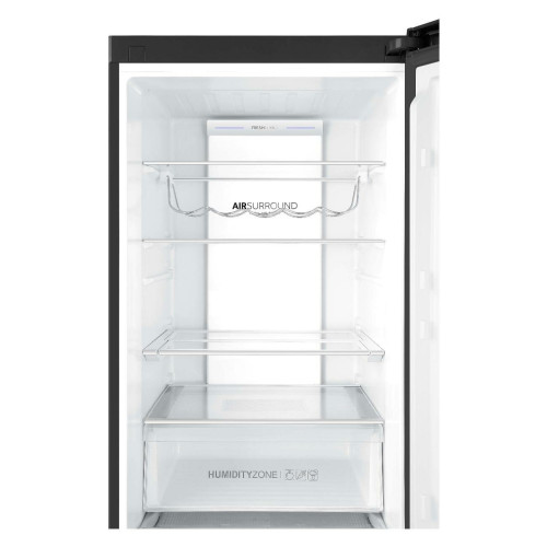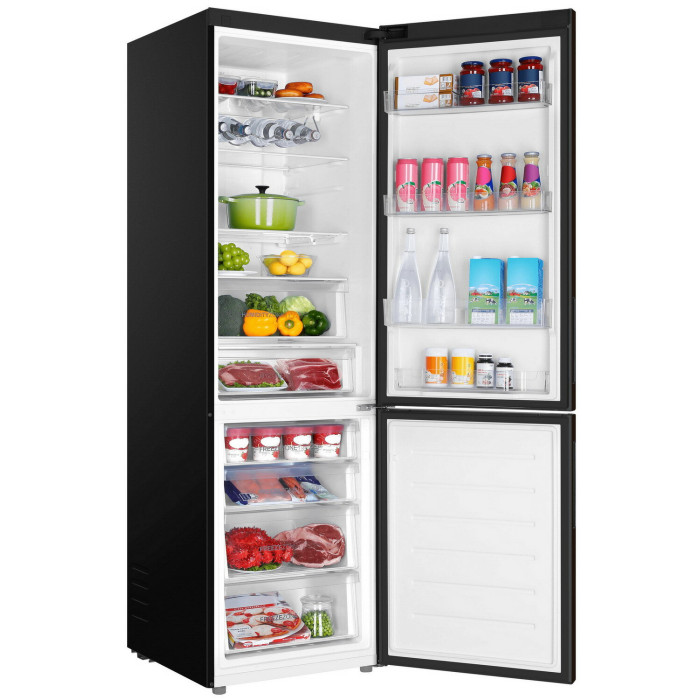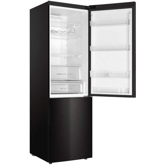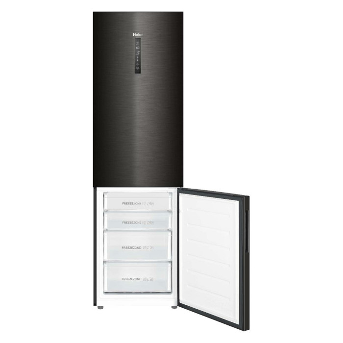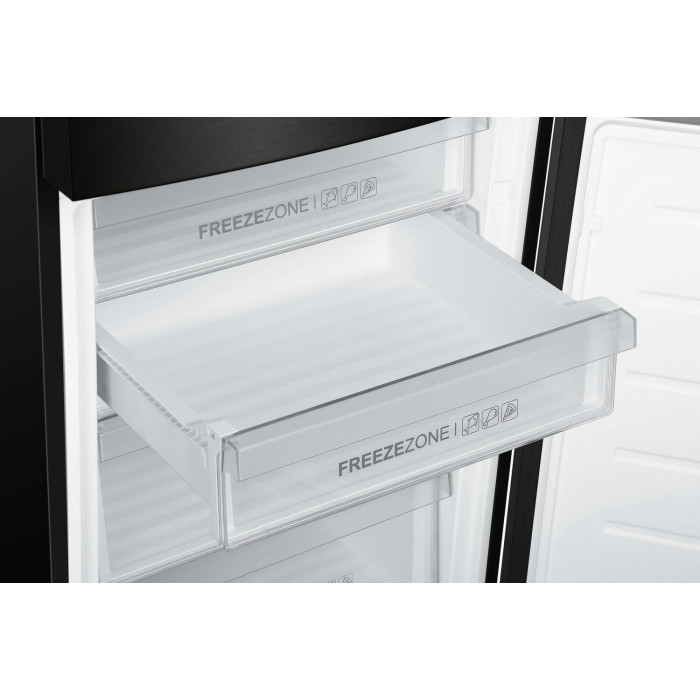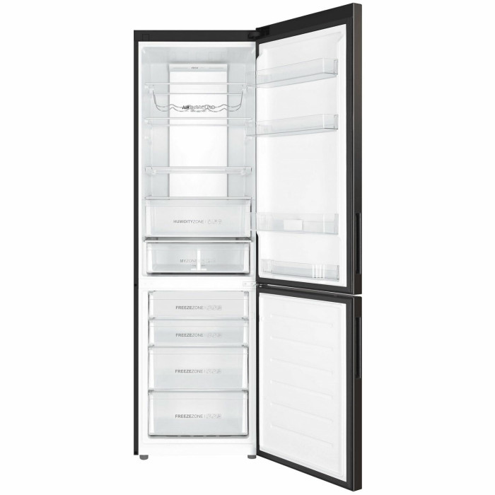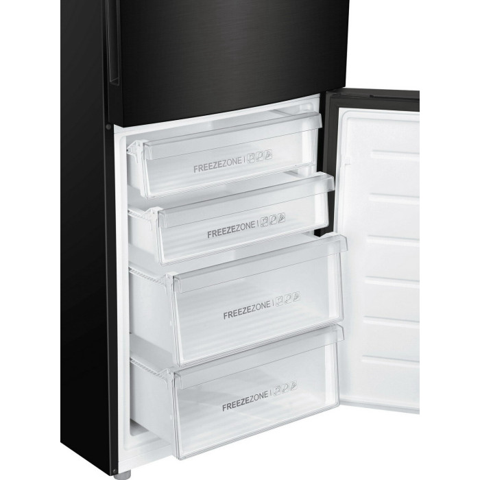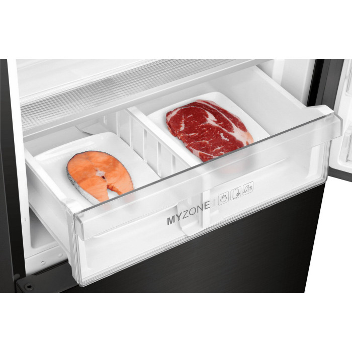Двухкамерный холодильник с нижним расположением морозильной камеры Общие данные: Размеры: высота (см): 200 ширина (см): 59,5 глубина (см): 68,2 Общий объем/ Полезный объем: Холодильника (л): 401/- Холодильной камеры (вкл. зону свежести) (л): 286/- Морозильной камеры (л): 115/- Тип управления: электронный Класс энергопотребления: A++ Климатический класс: SN-T (от +10°C до +43°C) Количество компрессоров: 1 Цвет: черная нержавеющая сталь Холодильное отделение: Полки из закаленного стекла Складная полка Регулируемое зона свежести MyZone Система No Frost (Frost Free, Ноу Фрост) Быстрое охлаждение Светодиодное освещение Tower Ящик для овощей и фруктов с регулировкой влажности HumidityBox Лоток для яиц: на 10 яиц Складная полка для вина Морозильное отделение: Система No Frost (Frost Free, Ноу Фрост) Быстрая заморозка 4 ящика Дополнительная информация: Тип компрессора: Инвертор Удаленное управление через Wi-Fi Режим "Отпуск" Конденсатор: Скрытый Перенавешиваемые двери Уровень шума дБ: 36 Тип хладагента: R600a