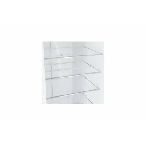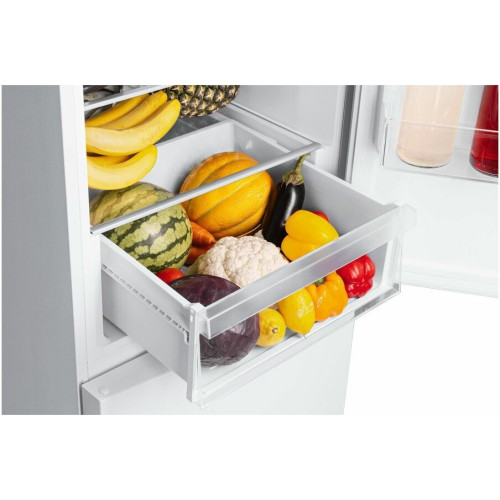 Двухкамерный холодильник с нижним расположением морозильной камеры Общие данные: Размеры: высота (см): 200 ширина (см): 59,5 глубина (см): 65 Общий объем/ Полезный объем: Холодильника (л): 368/- Холодильной камеры (л): 263/- Морозильной камеры (л): 105/- Тип управления: электронный Класс энергопотребления: A Климатический класс: ST (от +18°C до +38°C) Количество компрессоров: 1 Годовое потребление энергии: 334 кВтч Цвет: белый Холодильное отделение: Полки из стекла: 4 Система No Frost (Frost Free, Ноу Фрост) Светодиодное освещение Функция суперохлаждения Ящик для овощей Морозильное отделение: Система No Frost (Frost Free, Ноу Фрост) Мощность замораживания: 12 кг/сутки Функция суперзамораживания 3 ящика Дополнительная информация: Сигнал открытой двери Функция Отпуск Уровень шума: 39 дБ Перенавешиваемые двери Ручки: Встроенные