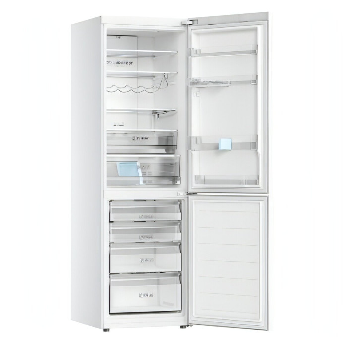 Технические особенности модели позволяют забыть о разморозке и сроке работы компрессора: система No Frost плюс smart компрессор с гарантией на 12 лет — выгодная покупка для комфортного использования. Оптимизируйте холодильник под свои потребности: используйте складную полку для вина, регулируйте температуру и влажность, включайте режим Отпуск, чтобы экономить электроэнергию и поддерживать работу только морозильной камеры. Особенности: 0° Zone Регулируемая влажность и температура около 0 градусов — специальная зона для качественного хранения мяса, рыбы, морепродуктов, сыров и молочных продуктов. Технология MultiFlow Равномерное распределение воздушных потоков по холодильному отделению и точное поддержание оптимальной температуры для хранения продуктов. Total NoFrost Никакого инея и льда в холодильнике. Благодаря постоянной циркуляции холодного воздуха, в холодильном и морозильном отделении создаются оптимальные условия хранения продуктов. T.ABT инновационная технология антибактериальной обработки Wi-Fi управление управление с помощью смартфона или планшета Складные полки вариативность внутреннего пространства холодильника Общие данные: Размеры: высота (см): 190.5 ширина (см): 59.5 глубина (см): 67.2 Общий объем/ Полезный объем: Холодильника (л): -/364 Холодильной камеры (вкл. зону свежести) (л): -/256 Морозильной камеры (л): -/108 Зона свежести: 21 л Тип управления: электронный Класс энергопотребления: A+ Климатический класс: SN-ST (от +10°C до +38°C) Количество компрессоров: 1 Годовое потребление энергии: 342 кВтч Цвет: белый Холодильное отделение: Полки из стекла: 4 Складная полка для вина Количество полок на двери: 4 Зона сохранения свежести Система No Frost (Frost Free, Ноу Фрост) Светодиодное освещение Функция суперохлаждения Ящики для овощей Морозильное отделение: Система No Frost (Frost Free, Ноу Фрост) Мощность замораживания: 12 кг/сутки Функция суперзамораживания Количество выдвижных ящиков: 4 Дополнительная информация: Покрытие: Нержавеющая сталь Тип компрессора: Стандартный Удаленное управление через Wi-Fi Перенавешиваемые двери Передние/задние регулируемые ножки Smart компрессор Напряжение/Частота: 220-240 V / 50Hz Сигнал открытой двери Уровень шума дБ (А): 39 Функция Отпуск Вес: 80 кг