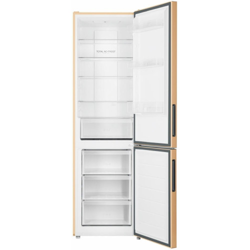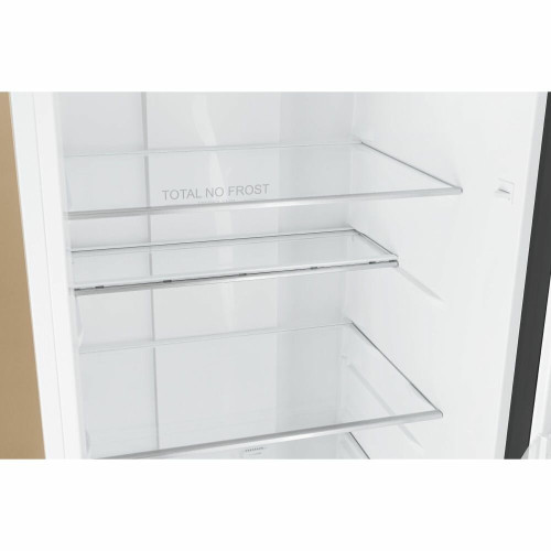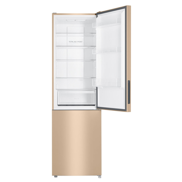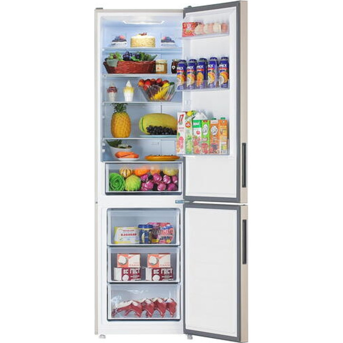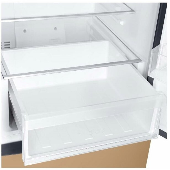 Двухкамерный холодильник с нижним расположением морозильной камеры Общие данные: Размеры: высота (см): 200 ширина (см): 59,5 глубина (см): 65 Общий объем/ Полезный объем: Холодильника (л): -/368 Холодильной камеры (л): -/263 Морозильной камеры (л): -/105 Тип управления: электронный Класс энергопотребления: A Климатический класс: ST (от +18°C до +38°C) Количество компрессоров: 1 Годовое потребление энергии: 334 кВтч Цвет: золотистый Холодильное отделение: Полки из стекла Складная полка Система многопоточного охлаждения Multi Air Flow Система No Frost (Frost Free, Ноу Фрост) Светодиодное освещение Функция суперохлаждения Ящик для овощей Морозильное отделение: Система No Frost (Frost Free, Ноу Фрост) Мощность замораживания: 12 кг/сутки Функция суперзамораживания 3 ящика Дополнительная информация: LED-дисплей Режим "Отпуск" Блокировка управления Уровень шума: 39 дБ Перенавешиваемые двери