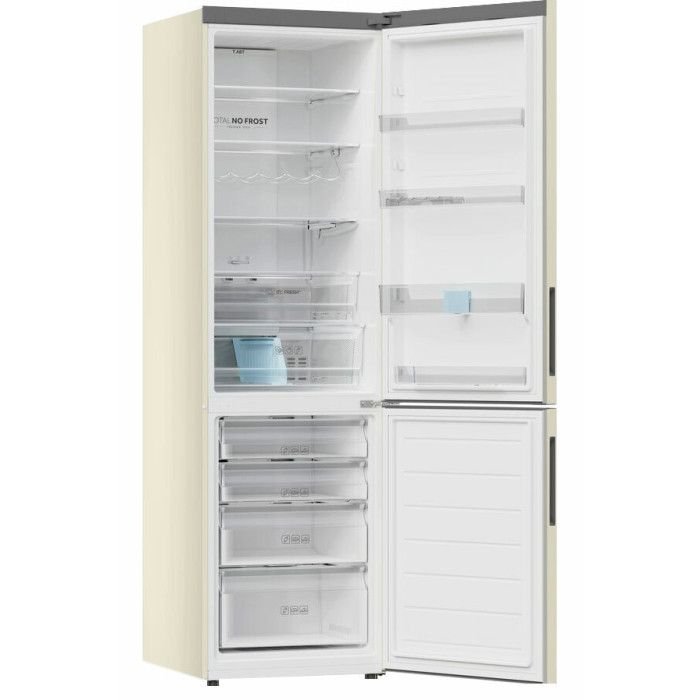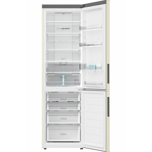 Холодильник C2F637C способен замораживать до 12 кг за 24 часа. Основные преимущества модели: технология охлаждения морозильной камеры No Frost, функции суперохлаждения и суперзамораживания, зона сохранения свежести, складная полка для бутылок. Особенности: 0° Zone Регулируемая влажность и температура около 0 градусов — специальная зона для качественного хранения мяса, рыбы, морепродуктов, сыров и молочных продуктов. Технология MultiFlow Равномерное распределение воздушных потоков по холодильному отделению и точное поддержание оптимальной температуры для хранения продуктов. Total NoFrost Никакого инея и льда в холодильнике. Благодаря постоянной циркуляции холодного воздуха, в холодильном и морозильном отделении создаются оптимальные условия хранения продуктов. Поддержка мобильного приложения evo Управляйте вашим холодильником удаленно. С помощью evo контролируйте и настраивайте температуру охлаждения в камерах, получайте уведомление об охлаждении напитков или другие важные оповещения на экран смартфона. Общие данные: Размеры: высота (см): 199.8 ширина (см): 59,5 глубина (см): 67.2 Общий объем/ Полезный объем: Холодильника (л): -/386 Холодильной камеры (вкл. зону свежести) (л): -/278 Морозильной камеры (л): -/108 Зона свежести: 21 л Тип управления: электронный Класс энергопотребления: A+ Климатический класс: SN-ST (от +10°C до +38°C) Количество компрессоров: 1 Годовое потребление энергии: 349 кВтч Цвет: бежевый Холодильное отделение: Полки из стекла: 5 Складная полка Количество полок на двери: 4 Зона сохранения свежести 0° Zone Система No Frost (Frost Free, Ноу Фрост) Светодиодное освещение Функция суперохлаждения Ящики для овощей Складная полка для вина Морозильное отделение: Система No Frost (Frost Free, Ноу Фрост) Мощность замораживания: 12 кг/сутки Функция суперзамораживания Количество отделений: 4 Дополнительная информация: Покрытие: Матовое Тип компрессора: Стандартный Удаленное управление через Wi-Fi Перенавешиваемые двери Передние/задние регулируемые ножки Напряжение/Частота: 220-240 V / 50Hz Сигнал открытой двери Уровень шума дБ (А): 39 Функция Отпуск
