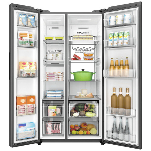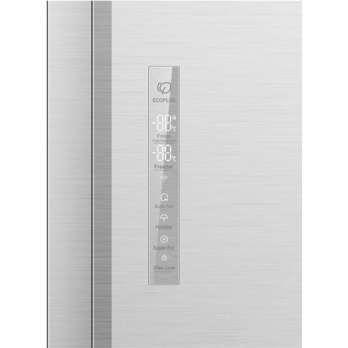 Особенности: Multi Air Flow Равномерное распределение воздушных потоков по холодильному отделению и точное поддержание оптимальной температуры для хранения продуктов. DEO Fresh Натуральный турмалиновый антибактериальный модуль обеспечивает ионизацию и обеззараживание воздуха за счет выделения отрицательных ионов. Это избавляет от неприятных запахов, обеспечивая более гигиеничное хранение продуктов. LED-дисплей Благодаря LED-дисплею и управлению на дверце, можно не открывать холодильник для смены настроек. Внутрь не попадает тёплый воздух — лучше сохранность продуктов и меньше расход электроэнергии Tower Led Светодиодная колонна Tower LED — на всю высоту холодильного отделения — позволяет в любой момент видеть то, что хранится в холодильнике. Вы легко и быстро найдёте нужный продукт — недостаточно освещённых зон просто нет. Поддержание влажности HCS Респираторная мембрана отводит лишнюю влажность если ее уровень более 90% или накапливает влагу при излишне сухом воздухе. Овощи и фрукты дольше остаются свежими. Складная полка для бутылок Двойная складная винная полка разработана для максимального удобства хранения продуктов и напитков: моделируйте пространство так, как вам удобно. Общие данные: Размеры: высота: 177,5 см ширина: 90,5 см глубина: 71,7 см Общий объем/ Полезный объем: Холодильника (л): -/598 Холодильной камеры (л): -/388 Морозильной камеры (л): -/210 Тип управления: электронный Класс энергопотребления: A++ Климатический класс: SN-T (от +10°С до +43°С) Количество компрессоров: 1 Годовое потребление энергии: 362 кВтч Цвет: нержавеющая сталь Холодильное отделение: Полки из закаленного стекла: 4 5 полочек на двери Система Nо Frost (Frost Free, Ноу Фрост) Светодиодное освещение Tower LED Диапазон температуры: 1~9°C Ящики для овощей и фруктов: 2 Цвет выдвижных ящиков: Прозрачный Регулируемое отделение HumidityBox Морозильное отделение: Система Nо Frost (Frost Free, Ноу Фрост) Количество звездочек: **** Диапазон температуры: -14~-24°C Мощность замораживания: 15 кг/сутки Светодиодное освещение Функция суперзамораживания Полки из закаленного стекла: 4 5 полочек на двери Дополнительная информация: Тип компрессора: Инвертор Вес нетто (кг): 95 Удаленное управление через Wi-Fi Напряжение/Частота: 220 В / 50 Гц Уровень шума дБ (А): 38 Функция Отпуск Тип хладагента: R600a Блокировка управления