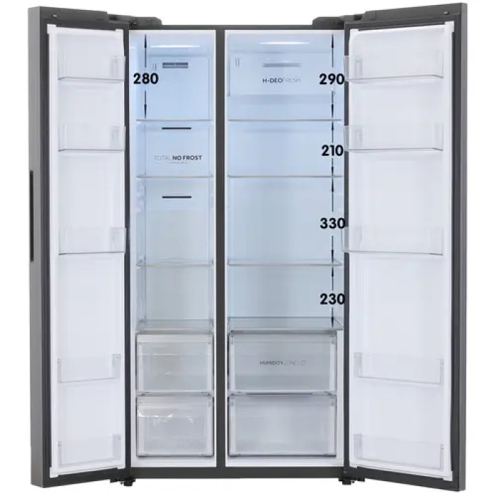 Особенности: Инверторный компрессор эффективность и тихая работа Класс A++ малый расход электроэнергии Total NoFrost система охлаждения без мороза и льда LED-дисплей управление настройками на двери холодильника Внутреннее LED освещение отличный обзор внутри холодильника Общие данные: Размеры: высота: 177,5 см ширина: 90,5 см глубина: 71,7 см Общий объем/ Полезный объем: Холодильника (л): -/598 Холодильной камеры (л): -/388 Морозильной камеры (л): -/210 Тип управления: электронный Класс энергопотребления: A++ Климатический класс: SN-T (от +10°С до +43°С) Количество компрессоров: 1 Годовое потребление энергии: 336 кВтч Цвет: серебристый Холодильное отделение: Полки из закаленного стекла: 4 5 полочек на двери Система Nо Frost (Frost Free, Ноу Фрост) Светодиодное освещение Ящики для овощей и фруктов: 2 Цвет выдвижных ящиков: Прозрачный Морозильное отделение: Система Nо Frost (Frost Free, Ноу Фрост) Количество звездочек: **** Мощность замораживания: 12 кг/сутки Светодиодное освещение Полки из закаленного стекла: 4 2 ящика 5 полочек на двери Дополнительная информация: Инверторный компрессор Конденсатор: Скрытый Напряжение/Частота: 220-240 V / 50Hz Уровень шума дБ (А): 38 Тип хладагента: R600a Вес нетто (кг): 95 Вес брутто (кг): 105