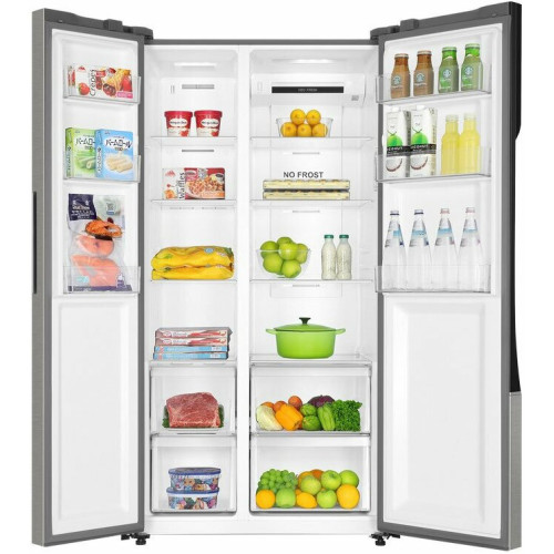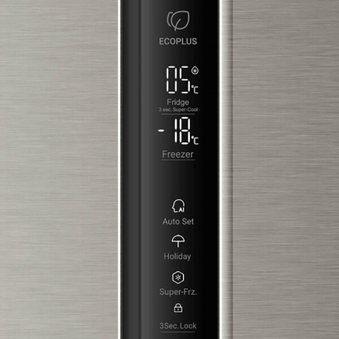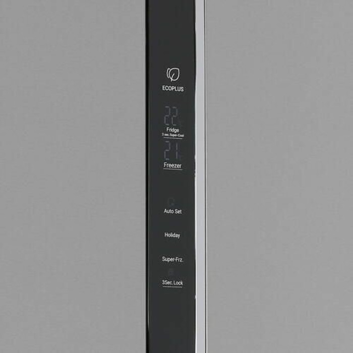 Особенности: Multi Air Flow Равномерное распределение воздушных потоков по холодильному отделению и точное поддержание оптимальной температуры для хранения продуктов. Fresh Turbo Использование ультрафиолетового излучения в холодильном отделении сдерживает развитие бактерий, плесени, неприятных запахов и позитивно влияет на срок и качество хранения продуктов. LED-дисплей Благодаря LED-дисплею и управлению на дверце, можно не открывать холодильник для смены настроек. Внутрь не попадает тёплый воздух — лучше сохранность продуктов и меньше расход электроэнергии. Внутреннее LED освещение Яркое светодиодное освещение обеспечивает отличный обзор внутри холодильника. Светодиоды экономичней и долговечней ламп накаливания и не влияют на температуру в холодильнике. Total NoFrost Ручное размораживание ушло в прошлое. В холодильном и морозильном отделении реализовано авторазмораживание Full No Frost — лёд в рабочих камерах не образовывается. Это ощутимо упрощает эксплуатацию холодильника Общие данные: Размеры: высота: 177,5 см ширина: 90,8 см глубина: 64,7 см Общий объем/ Полезный объем: Холодильника (л): -/504 Холодильной камеры (л): -/337 Морозильной камеры (л): -/167 Тип управления: электронный Класс энергопотребления: A+ Климатический класс: SN-T (от +10°С до +43°С) Количество компрессоров: 1 Годовое потребление энергии: 399 кВтч Цвет: серебристый Холодильное отделение: Полки из закаленного стекла: 4 Количество полок на двери: 3 Система многопоточного охлаждения Multi Air Flow Система Nо Frost (Frost Free, Ноу Фрост) Светодиодное освещение Режим суперохлаждения Ящики для овощей: 2 Fresh Turbo Морозильное отделение: Система Nо Frost (Frost Free, Ноу Фрост) Мощность замораживания: 10 кг/сутки Светодиодное освещение Режим суперзамораживания Полки из закаленного стекла: 4 2 ящика Дополнительная информация: Инверторный компрессор LED-дисплей Сигнал открытой двери Антибактериальная функция Уровень шума: 38 дБ Функция Отпуск Блокировка управления
