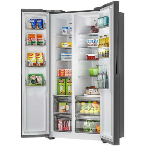 Особенности: Multi Air Flow Равномерное распределение воздушных потоков по холодильному отделению и точное поддержание оптимальной температуры для хранения продуктов. LED-дисплей Благодаря LED-дисплею и управлению на дверце, можно не открывать холодильник для смены настроек. Внутрь не попадает тёплый воздух — лучше сохранность продуктов и меньше расход электроэнергии Общие данные: Размеры: высота: 179 см ширина: 90,8 см глубина: 65,5 см Общий объем/ Полезный объем: Холодильника (л): -/507 Холодильной камеры (л): -/334 Морозильной камеры (л): -/173 Тип управления: электронный Класс энергопотребления: A+ Климатический класс: SN-ST (от +10°С до +38°С) Количество компрессоров: 1 Годовое потребление энергии: 400 кВтч Цвет: серебристый Холодильное отделение: Полки из закаленного стекла: 4 + 1 крышка ящика Система Nо Frost (Frost Free, Ноу Фрост) Светодиодное освещение Режим суперохлаждения Ящики для овощей: 2 Лоток для яиц Морозильное отделение: Система Nо Frost (Frost Free, Ноу Фрост) Мощность замораживания: 10 кг/сутки Светодиодное освещение Режим суперзамораживания Полки из закаленного стекла: 4 + 1 крышка ящика 2 ящика Цвет выдвижных ящиков: Прозрачный серый + белый Дополнительная информация: Инверторный компрессор Уровень шума: 38 дБ Тип хладагента: R600a