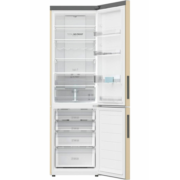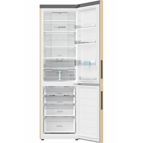 Холодильник C2F637C способен замораживать до 12 кг за 24 часа. Основные преимущества модели: технология охлаждения морозильной камеры No Frost, функции суперохлаждения и суперзамораживания, зона сохранения свежести, складная полка для бутылок. Особенности: 0° Zone Регулируемая влажность и температура около 0 градусов - специальная зона для качественного хранения мяса, рыбы, морепродуктов, сыров и молочных продуктов. Технология MultiFlow Равномерное распределение воздушных потоков по холодильному отделению и точное поддержание оптимальной температуры для хранения продуктов. Total NoFrost Никакого инея и льда в холодильнике. Благодаря постоянной циркуляции холодного воздуха, в холодильном и морозильном отделении создаются оптимальные условия хранения продуктов. Поддержка мобильного приложения evo Управляйте вашим холодильником удаленно. С помощью evo контролируйте и настраивайте температуру охлаждения в камерах, получайте уведомление об охлаждении напитков или другие важные оповещения на экран смартфона. Общие данные: Размеры: высота (см): 199.8 ширина (см): 59,5 глубина (см): 67.2 Общий объем/ Полезный объем: Холодильника (л): -/386 Холодильной камеры (вкл. зону свежести) (л): -/278 Морозильной камеры (л): -/108 Тип управления: электронный Класс энергопотребления: A+ Климатический класс: SN-ST (от +10°C до +38°C) Количество компрессоров: 1 Годовое потребление энергии: 342 кВтч Цвет: золотистый Холодильное отделение: Полки из стекла: 5 Складная полка Количество полок на двери: 4 Зона сохранения свежести 0° Zone Система No Frost (Frost Free, Ноу Фрост) Светодиодное освещение Функция суперохлаждения Ящики для овощей Складная полка для вина Морозильное отделение: Система No Frost (Frost Free, Ноу Фрост) Мощность замораживания: 12 кг/сутки Функция суперзамораживания Количество отделений: 4 Дополнительная информация: Покрытие: Металлик Тип компрессора: Стандартный Удаленное управление через Wi-Fi Перенавешиваемые двери Передние/задние регулируемые ножки Напряжение/Частота: 220-240 V / 50Hz Сигнал открытой двери Уровень шума дБ (А): 39 Функция Отпуск