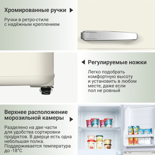 подсветка холодильного отделения, отделение для овощей и фруктов, лоток для яиц, лоток для льда, длина шнура питания 1,5м