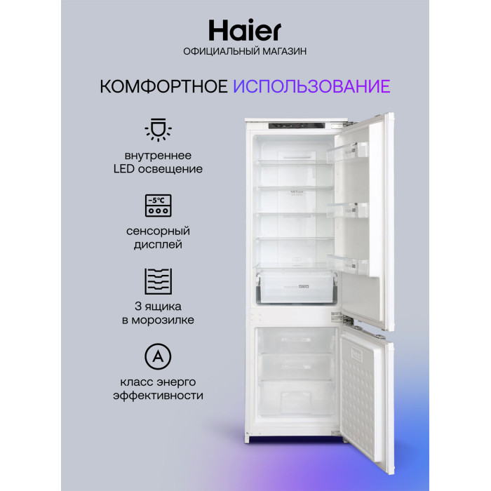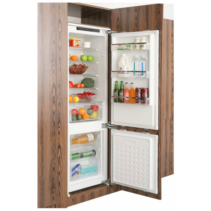 Индикация включения; Индикация температуры холодильной камеры; Индикация температуры морозильной камеры; Светодиодное освещение; Механизм мягкого закрытия двери; Полка для бутылок; Комплектация: Ванночки для льда