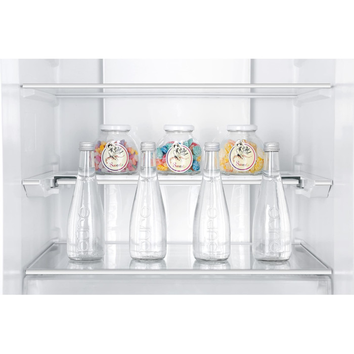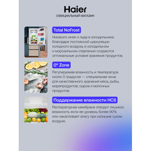 Сенсорное управление; Светодиодное освещение; Регулировка температуры в зоне сохранения свежести; Подогрев контура двери; Ионизатор; Открывание дверей вправо; Полка для бутылок