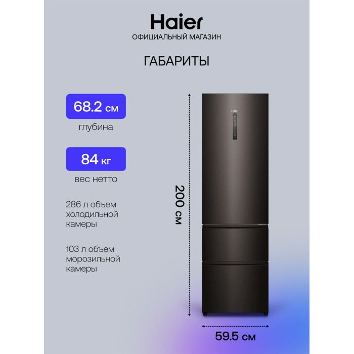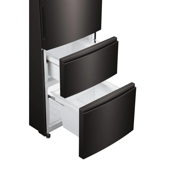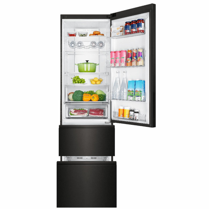 Общие данные: Размеры: высота (см): 200 ширина (см): 59.5 глубина (см): 68.2 Общий объем/ Полезный объем: Холодильника (л): -/389 Холодильной камеры (вкл. зону свежести) (л): -/286 Морозильной камеры (л): -/103 Тип управления: электронный Класс энергопотребления: A++ Климатический класс: SN-T (от +10°C до +43°C) Количество компрессоров: 1 Цвет: черная нержавеющая сталь Холодильное отделение: Полки из закаленного стекла: 3 Складная полка Количество полок на двери: 4 Регулируемое зона свежести MyZone Система No Frost (Frost Free, Ноу Фрост) Светодиодное освещение: Tower LED Ящик для овощей и фруктов с регулировкой влажности HumidityBox Регулируемое отделение MyZone Лоток для яиц: на 10 яиц Складная полка для вина Морозильное отделение: Система No Frost (Frost Free, Ноу Фрост) Светодиодное освещение 2 выдвижных ящика Диспенсер воды и льда Дополнительная информация: Тип компрессора: инвертор Удаленное управление через Wi-Fi Конденсатор: скрытый Перенавешиваемые двери Уровень шума дБ: 36 Тип хладагента: R600a Вес: 84 кг