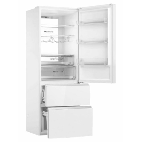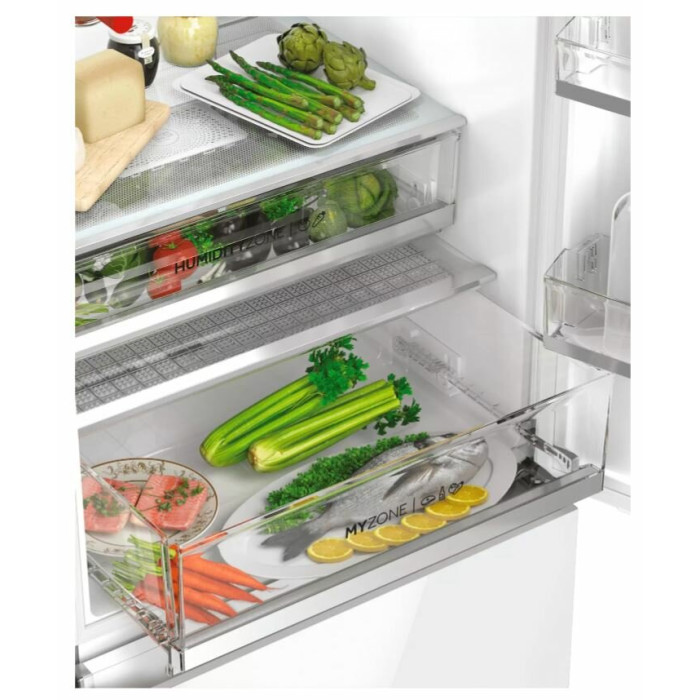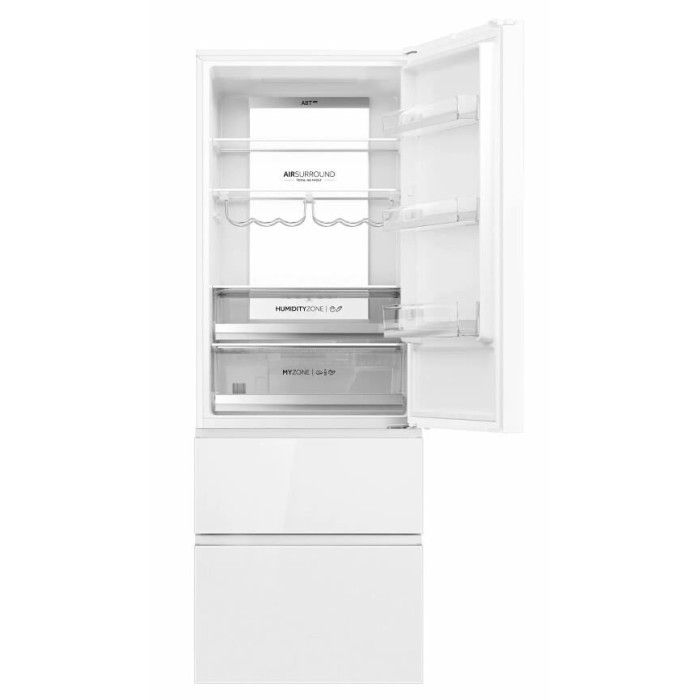 Особенности: 0° Zone Регулируемая влажность и температура около 0 градусов — специальная зона для качественного хранения мяса, рыбы, морепродуктов, сыров и молочных продуктов. Fresh Turbo Использование ультрафиолетового излучения в холодильном отделении сдерживает развитие бактерий, плесени, неприятных запахов и позитивно влияет на срок и качество хранения продуктов. Поддержание влажности HCS Респираторная мембрана отводит лишнюю влажность, если ее уровень более 90%, или накапливает влагу при излишне сухом воздухе. Овощи и фрукты дольше остаются свежими. Инверторный компрессор: эффективность и тихая работа Total NoFrost Total NoFrost система охлаждения без мороза и льда Tower LED Tower LED освещение на задней стенке холодильного отделения Wi-Fi управление Wi-Fi управление управление с помощью смартфона или планшета Общие данные: Размеры: высота (см): 200,6 ширина (см): 70 глубина (см): 67,5 Общий объем/ Полезный объем: Холодильника (л): -/463 Холодильной камеры (вкл. зону свежести) (л): -/342 Морозильной камеры (л): -/121 Тип управления: электронный Класс энергопотребления: A++ Климатический класс: SN-T (от +10 до +43 С) Количество компрессоров: 1 Годовое потребление энергии: 290 кВтч/год Цвет: белое стекло Холодильное отделение: Полки из закаленного стекла: 3 Количество полок на двери: 3 Зона свежести MyZone с возможностью выбора режима работы («Фрукты и овощи» - «Свежесть при 0 °C» - «Интенсивное охлаждение +2 °C») Система No Frost (Frost Free, Ноу Фрост) Светодиодная подсветка Функция суперохлаждения Humidity Control System (HCS) Лоток для яиц Регулируемое отделение HumidityBox Морозильное отделение: Система No Frost (Frost Free, Ноу Фрост) Мощность замораживания, кг/24ч: 14 Функция суперзамораживания Отделений морозильной камеры: 2 Дополнительная информация: Покрытие: Стекло Тип компрессора: Инвертор Система управления: Сенсорная Удаленное управление через Wi-Fi Напряжение/Частота: 220~240 В / 50 Гц Сигнал открытой двери Уровень шума дБ (А): 38 Функция Отпуск Тип хладагента: R600a