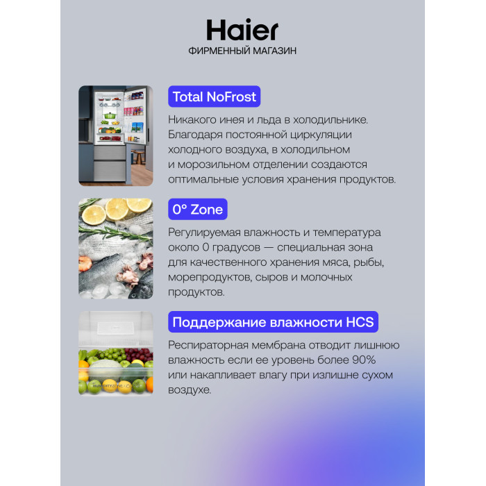 суперзаморозка, суперохлаждение, Авторазморозка, Ионизатор, Система контроля влажности