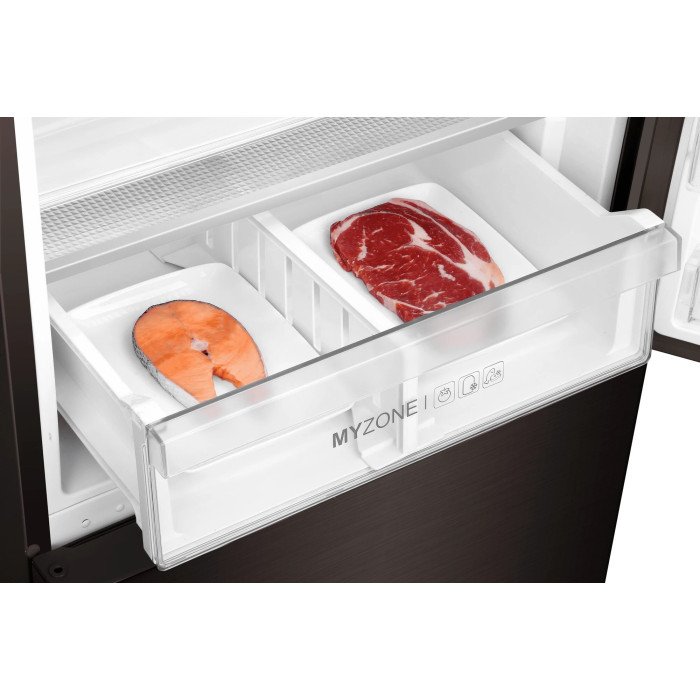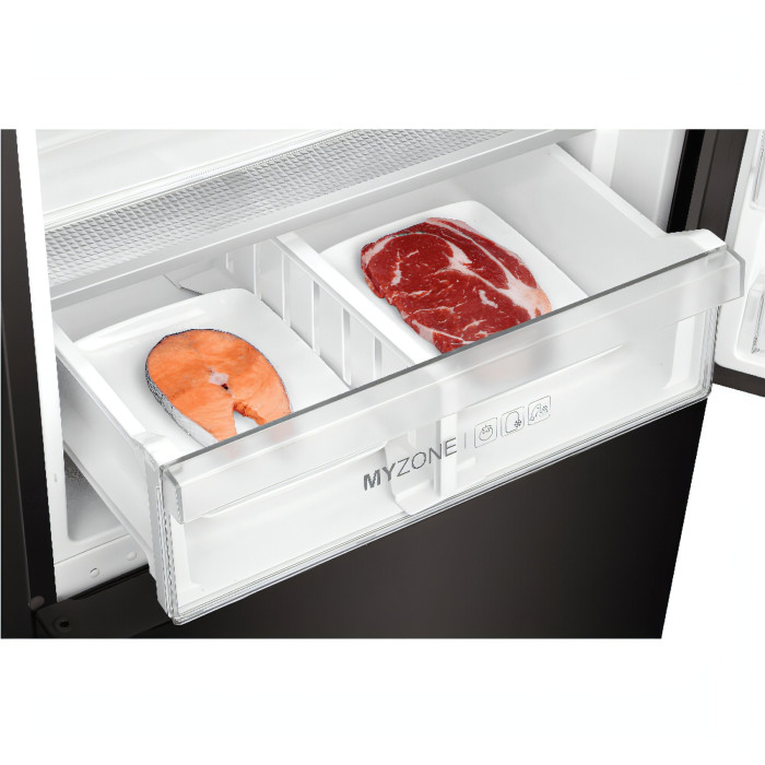 Сенсорное управление; Светодиодное освещение; Освещение морозильной камеры; Регулировка температуры в зоне сохранения свежести; Подогрев контура двери; Ионизатор; Открывание дверей вправо; Полка для бутылок