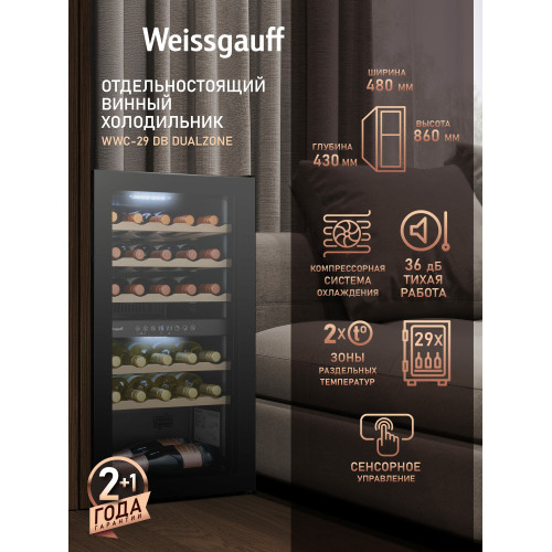 Винный холодильник Weissgauff WWC-29 DB DualZone