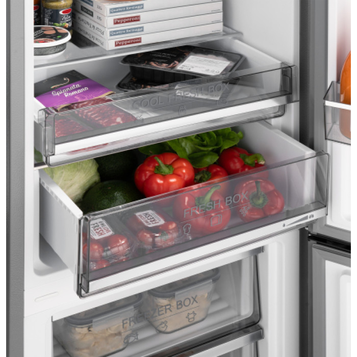 Зона свежести, оснащенная функцией контроля влажности, позволит подобрать оптимальный режим для хранения овощей, фруктов и других продуктов, требовательных к поддержанию особого микроклимата.