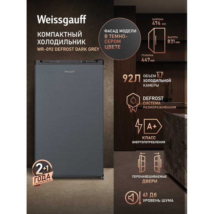 Холодильник Weissgauff WR-092 Defrost Dark Grey