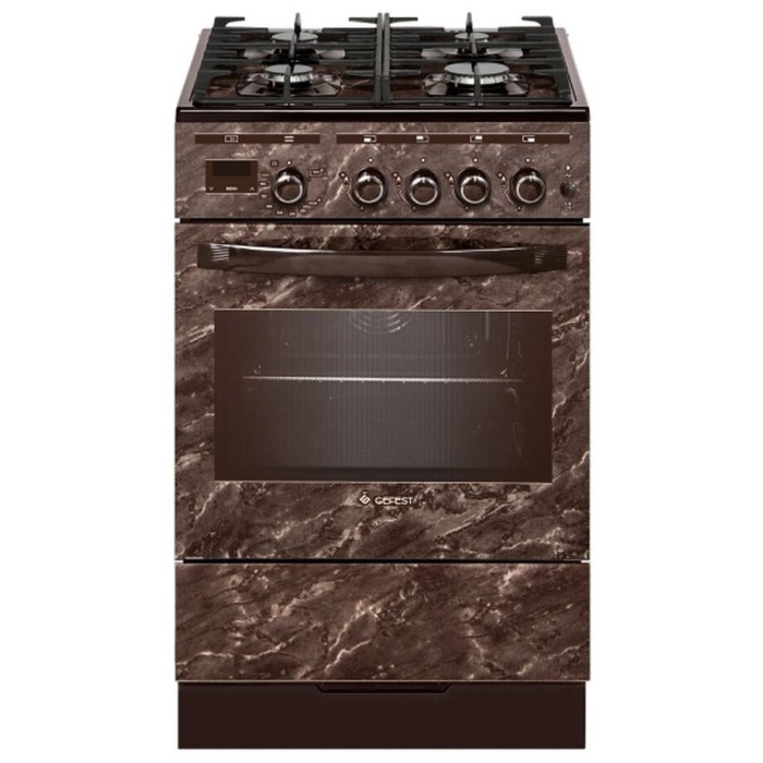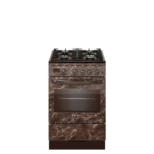 тип: газовая, тип духовки: газовая, тип варочной панели: газовая, материал рабочей поверхности: закаленное стекло, ширина: 50 см, глубина: 58.50 см, количество конфорок: 4, газ-контроль: конфорок, духовки, гриль, особенности конструкции: ящик для посуды, подсветка духовки, вертел, дополнительные функции: таймер, термостат, тип таймера: есть, очистка духовки: традиционная
