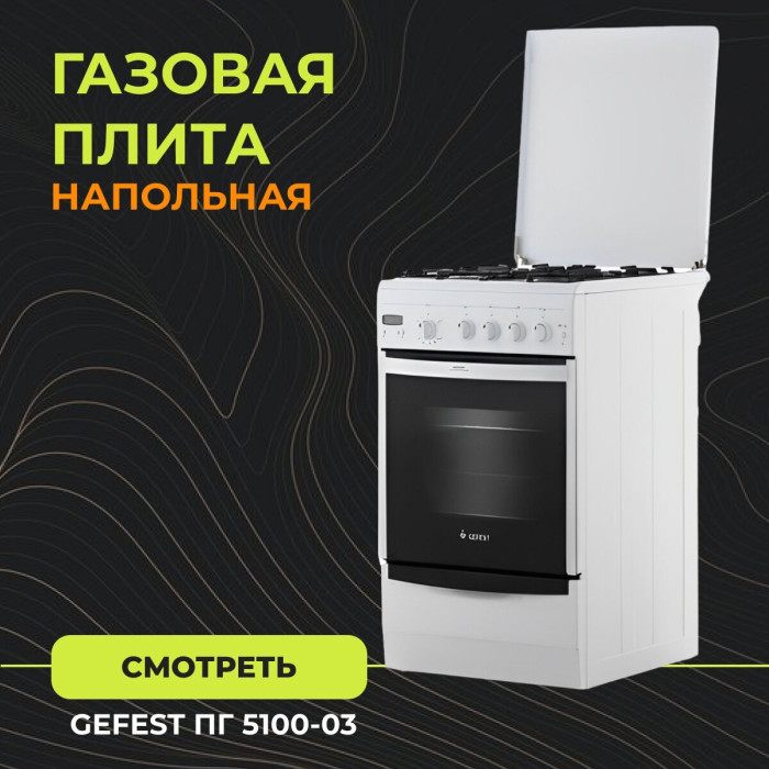 Газовая плита с обновленным дизайном и электронным таймером, ширина 50 см. Эмалированный фасад и металлическая крышка стола, все газовые горелки оснащены электроподжигом и газ-контролем, модель обладает узнаваемым фирменным обликом Gefest и полноценным функционалом современной газовой плиты. Большая, вместительная духовка с регулируемой температурой нагрева (термостат), дополнительный режим работы - гриль. Электронный таймер упрощает пользование плитой, окончание работы обозначается звуковым сигналом.
