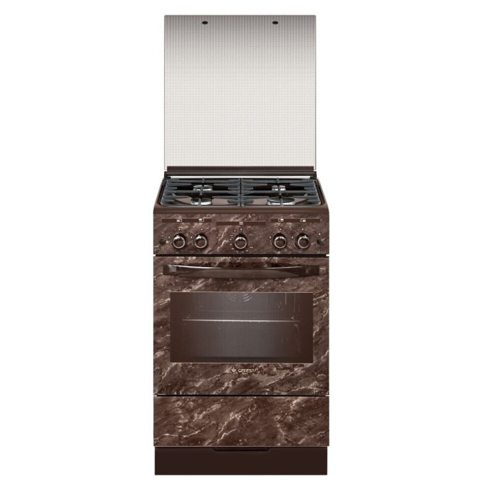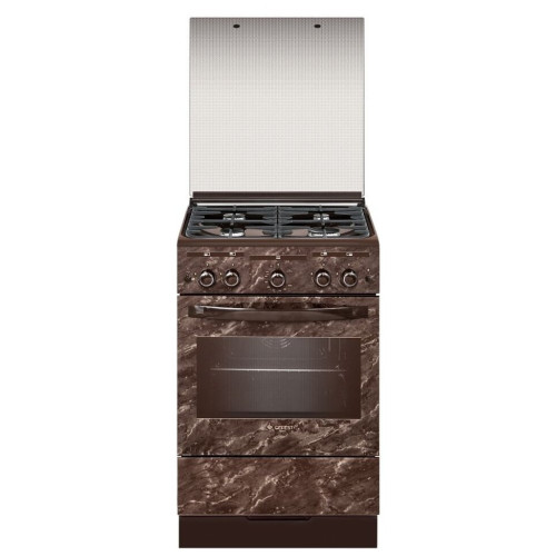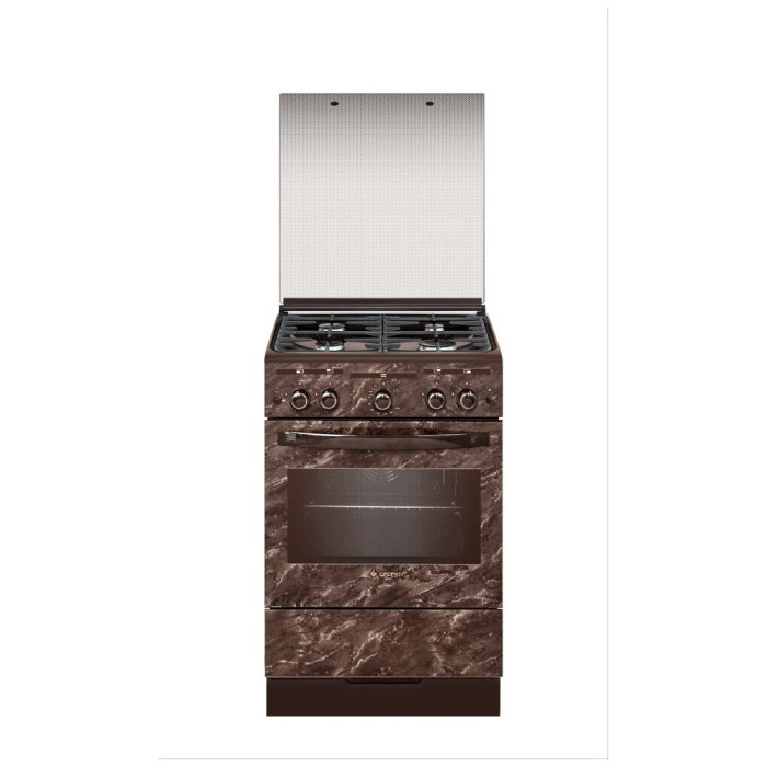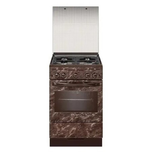 тип: газовая, тип духовки: газовая, тип варочной панели: газовая, материал рабочей поверхности: эмалированная сталь, ширина: 50 см, глубина: 58.50 см, количество конфорок: 4, электроподжиг: варочная поверхность + духовой шкаф, газ-контроль: конфорок, духовки, гриль, особенности конструкции: ящик для посуды, подсветка духовки, вертел, дополнительные функции: термостат, безопасность: защитное отключение конфорок, очистка духовки: традиционная