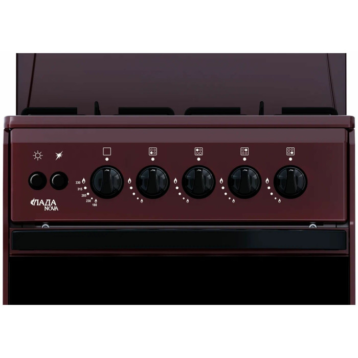 Плита газовая Лада Nova RG 2427B с розжигом и подсветкой Характеристики: Тип: газовая Цвет: коричневый Количество конфорок: 4 шт Мощность горелок стола: - Передняя левая: 1.3 кВт - Передняя правая: 2.1 кВт - Задняя левая: 1.3 кВт - Задняя правая: 1.3 кВт Управление: механическое поворотные переключатели Объём духовки: 50 л Мощность горелки духовки: 2.4 кВт Электроподжиг: есть Подсветка: есть Комплектация: - решетка: есть - крышка: есть - хозяйственный отсек: есть Газ-контроль горелок стола: нет Газ-контроль горелок духовки: есть Стекло дверцы духовки: двойное Материал варочной поверхности: эмаль Вид и давление газа: природный (метан) 1300 Па Подключение: 1/2" Торговая марка: Лада Nova Страна, город: " Каневской завод газовой аппаратуры" ст. Каневская, Краснодарский край Габаритные размеры: 500х600х850 мм Вес: 32 кг Описание: Плита газовая Лада Nova - это новая линейка газовых плит отечественного производства, изготавливаемая на " Каневском заводе газовой аппаратуры", расположенном в станице Каневская Краснодарского края. Легко очищающаяся эмаль наносится по уникальной технологии порошкового напыления в электростатическом поле. Эмаль инертна к любым химическим и механическим воздействиям. Легко очищается и долго сохраняет отличный внешний вид. Штампованная решётка стола гарантирует прочность и долговечность конструкции даже при использовании крупногабаритной посуды. Для простоты ухода за плитой, решетки сделаны съемными из двух половинок. Регулируемые опоры компенсируют каждую неровность пола и позволяют установить плиту идеально ровно на любой поверхности. Вместительный хозяйственны отсек для хранения посуды и принадлежностей духовки.
