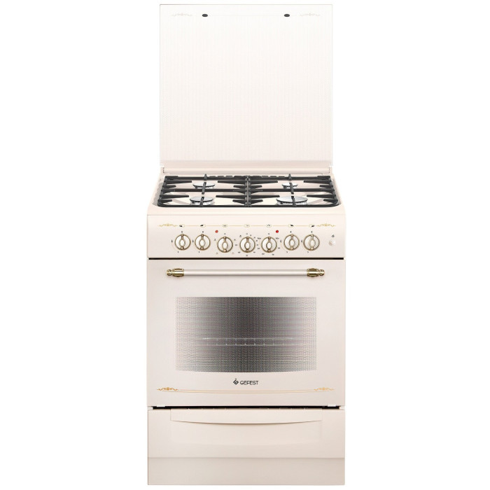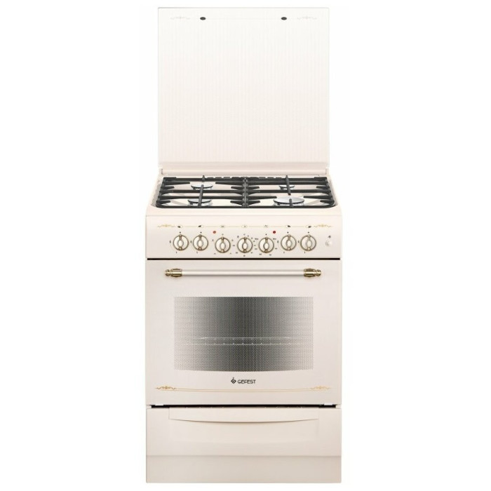 тип: комбинированная, тип духовки: электрическая, тип варочной панели: газовая, материал рабочей поверхности: эмалированная сталь, ширина: 60 см, глубина: 60 см, количество конфорок: 4, гриль, особенности конструкции: эмаль легкой чистки, дополнительные функции: термостат, очистка духовки: традиционная