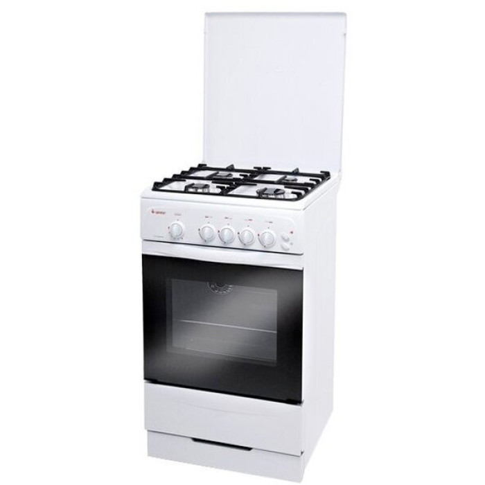 тип: газовая, тип духовки: газовая, тип варочной панели: газовая, ширина: 50 см, глубина: 57 см, количество конфорок: 4, электроподжиг: варочная поверхность, газ-контроль: духовки, конфорок, особенности конструкции: ящик для посуды, очистка духовки: традиционная