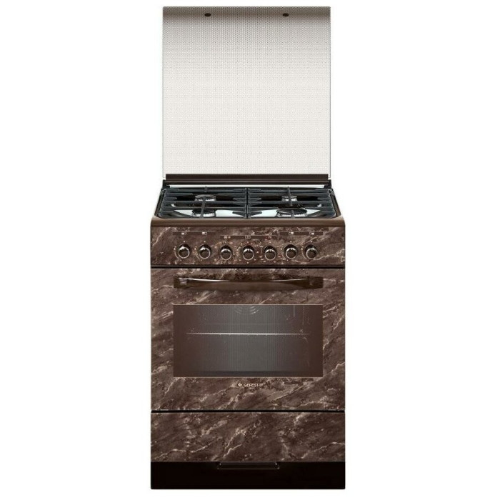 тип: комбинированная, тип духовки: электрическая, тип варочной панели: газовая, материал рабочей поверхности: эмалированная сталь, ширина: 60 см, глубина: 60 см, количество конфорок: 4, электроподжиг: варочная поверхность, газ-контроль: конфорок, гриль, особенности конструкции: вертел, подсветка духовки, чугунные решетки, ящик для посуды, дополнительные функции: термостат, тип таймера: звуковой, очистка духовки: традиционная