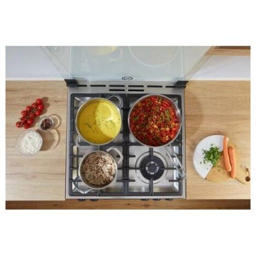 тип: комбинированная, тип духовки: электрическая, тип варочной панели: газовая, ширина: 50 см, глубина: 59.40 см, количество конфорок: 4, электроподжиг: варочная поверхность, газ-контроль: конфорок, гриль, дополнительные функции: термостат