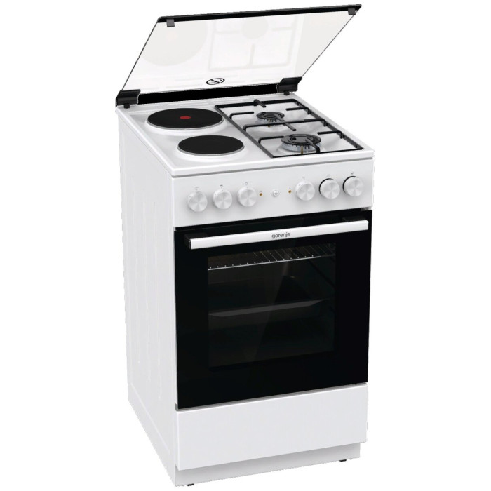 тип: комбинированная, тип духовки: газовая, тип варочной панели: комбинированная, ширина: 50 см, глубина: 59.40 см, количество конфорок: 4, особенности конструкции: подсветка духовки, очистка духовки: гидролизная