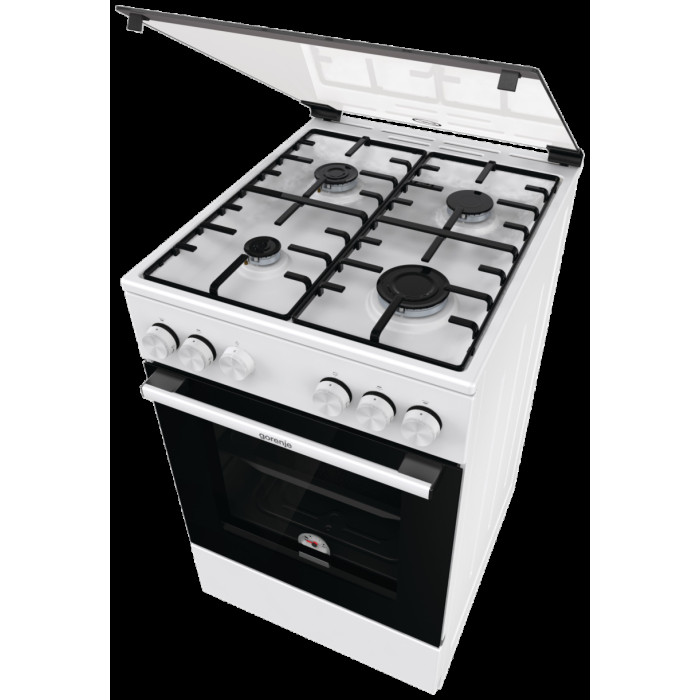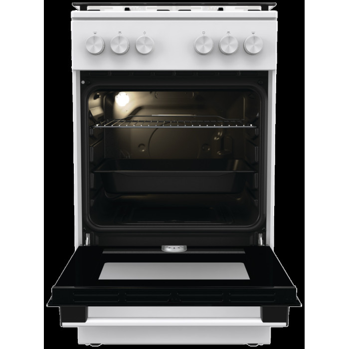тип: газовая, тип духовки: газовая, тип варочной панели: газовая, материал рабочей поверхности: эмалированная сталь, ширина: 50 см, глубина: 59.40 см, количество конфорок: 4, электроподжиг: варочная поверхность + духовой шкаф, газ-контроль: конфорок, духовки, особенности конструкции: подсветка духовки