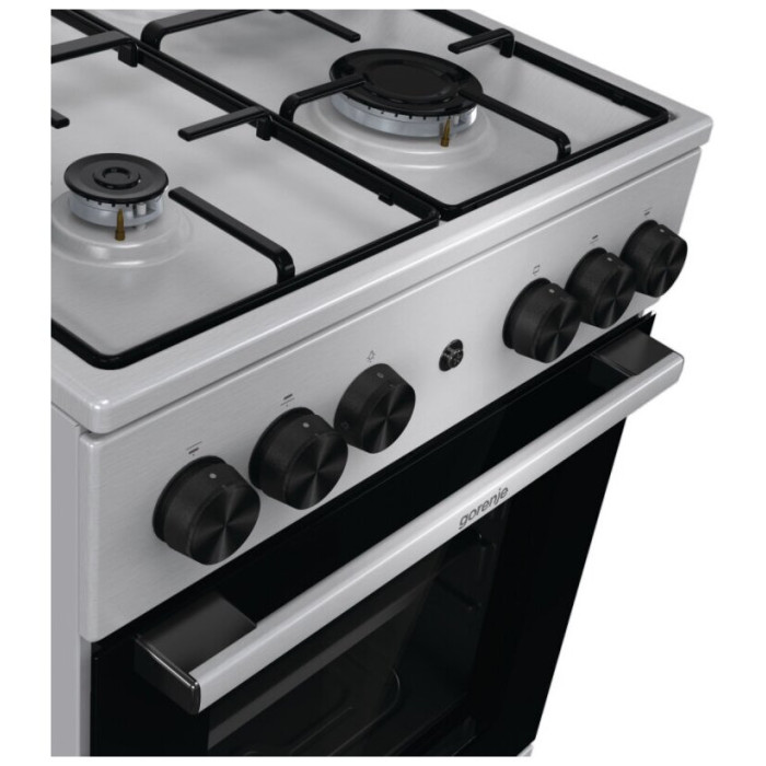 тип: газовая, тип духовки: газовая, тип варочной панели: газовая, материал рабочей поверхности: нерж. сталь, ширина: 50 см, глубина: 59.40 см, количество конфорок: 4, электроподжиг: варочная поверхность + духовой шкаф, газ-контроль: духовки, гриль, особенности конструкции: Стеклянная крышка, дополнительные функции: SuperSize: максимальная площадь приготовления, дверца CompactDoor 2 стекла и 1 термослой, выдвижной ящик для принадлежностей, приготовление на гриле с закрытой дверцей, Материал панели управления нержавеющая сталь, пиролитическая эмаль духового шкафа SilverMatte, освещение духовки на задней стенке, термоэлектрический предохранитель, тип вилки AC 230 В, эргономичный переключатели, стеклянная крышка, газовый нагрев термостатированный., безопасность: Газ-контроль духовки, очистка духовки: традиционная