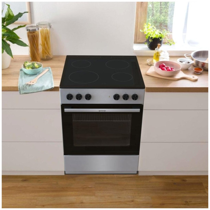 тип: электрическая, тип духовки: Электрический, тип варочной панели: электрическая, материал рабочей поверхности: стеклокерамика, количество конфорок: 4, особенности конструкции: ящик для посуды, Есть, дополнительные функции: Остаточное тепло, тип таймера: Нет, очистка духовки: гидролизная