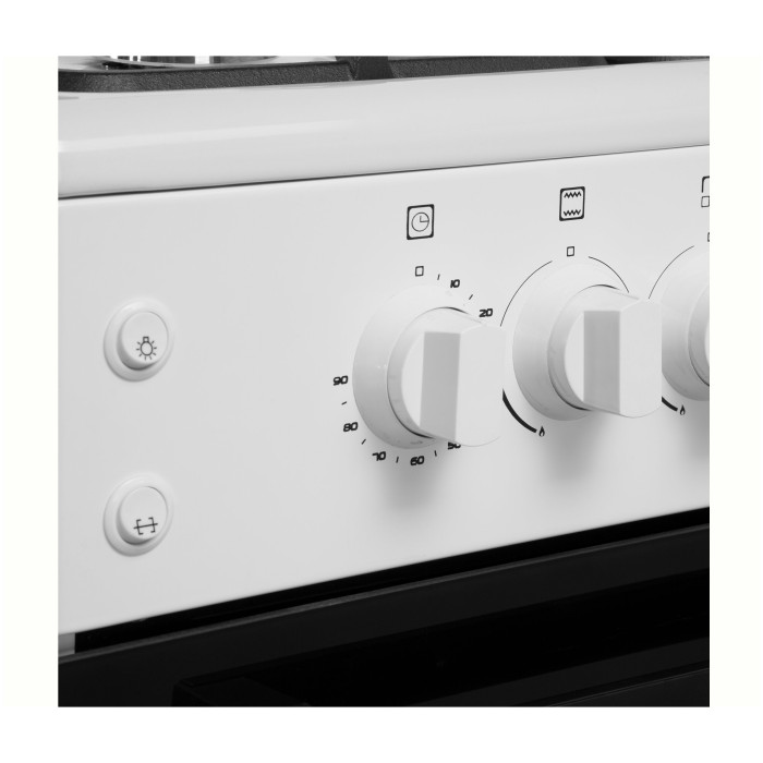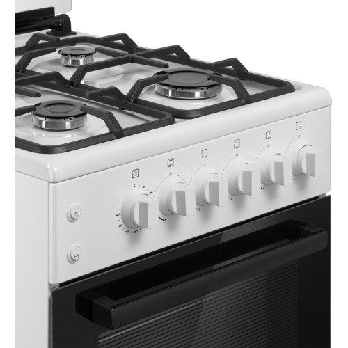 тип: газовая, тип духовки: газовая, тип варочной панели: газовая, материал рабочей поверхности: эмалированная сталь, ширина: 50 см, глубина: 61 см, количество конфорок: 4, электроподжиг: варочная поверхность + духовой шкаф, газ-контроль: духовки, конфорок, гриль, особенности конструкции: вертел, подсветка духовки, часы, чугунные решетки, эмаль легкой чистки, ящик для посуды, дополнительные функции: таймер, очистка духовки: гидролизная
