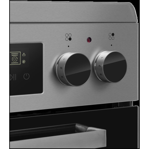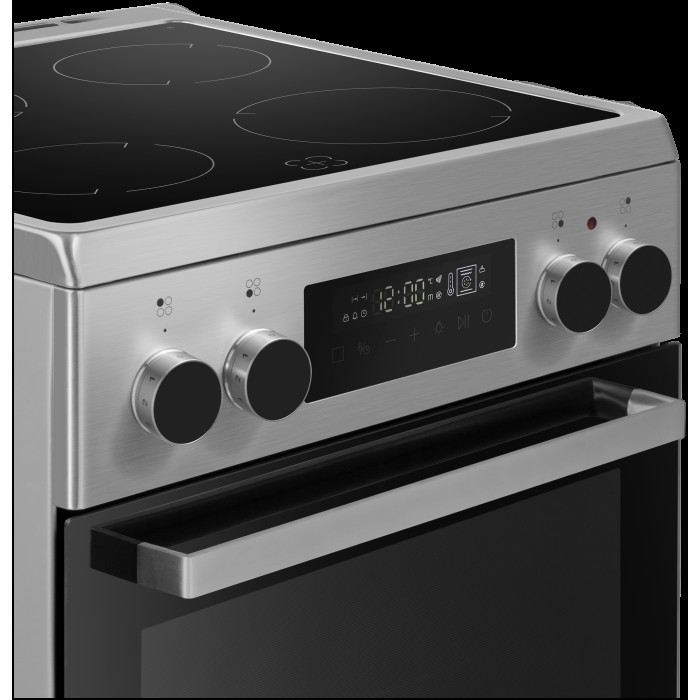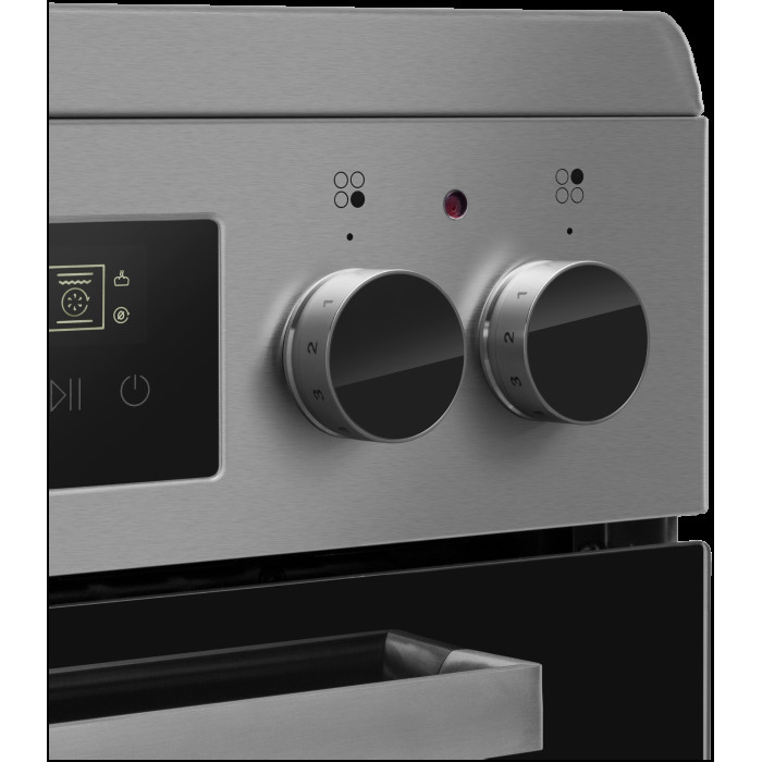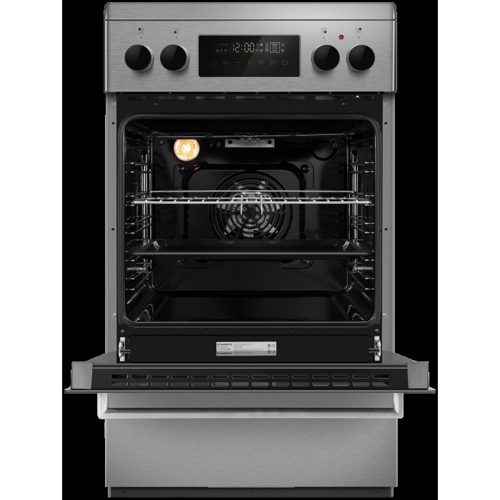 тип: электрическая, тип духовки: электрическая, тип варочной панели: электрическая, материал рабочей поверхности: стеклокерамика, ширина: 50 см, глубина: 53 см, количество конфорок: 4, конвекция в духовке, гриль, особенности конструкции: дисплей, подсветка духовки, эмаль легкой чистки, ящик для посуды, дополнительные функции: таймер, тип таймера: звуковой, очистка духовки: традиционная