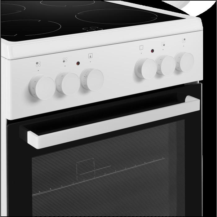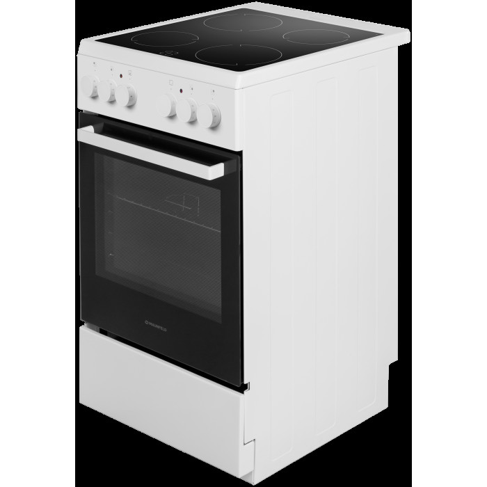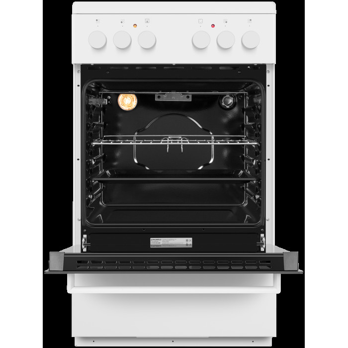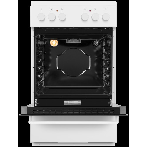 тип: электрическая, тип духовки: электрическая, тип варочной панели: электрическая, материал рабочей поверхности: стеклокерамика, ширина: 50 см, глубина: 63 см, количество конфорок: 4, гриль, особенности конструкции: подсветка духовки, эмаль легкой чистки, ящик для посуды, дополнительные функции: термостат, очистка духовки: традиционная