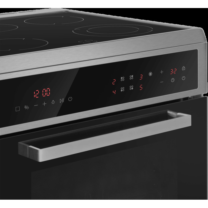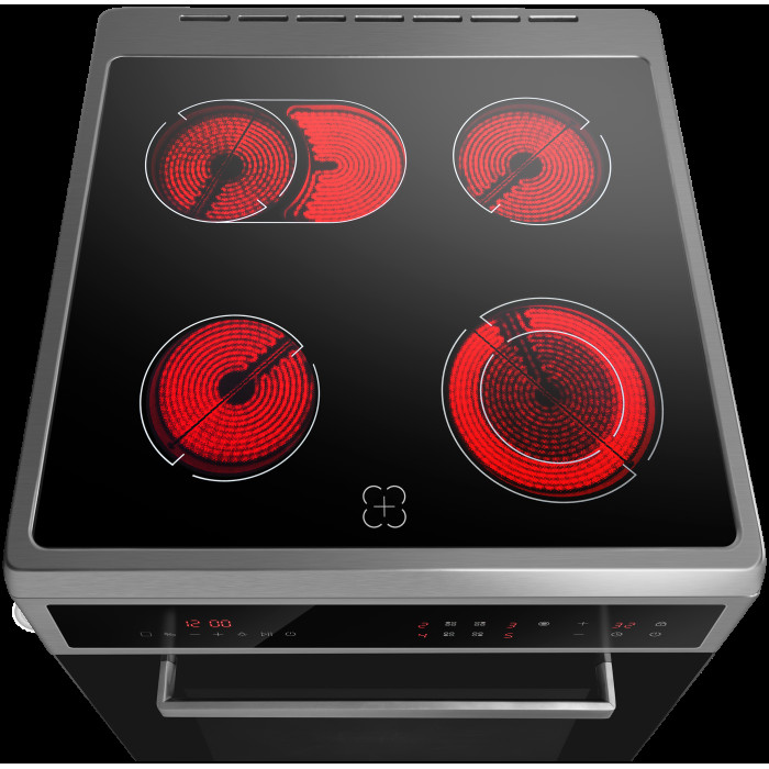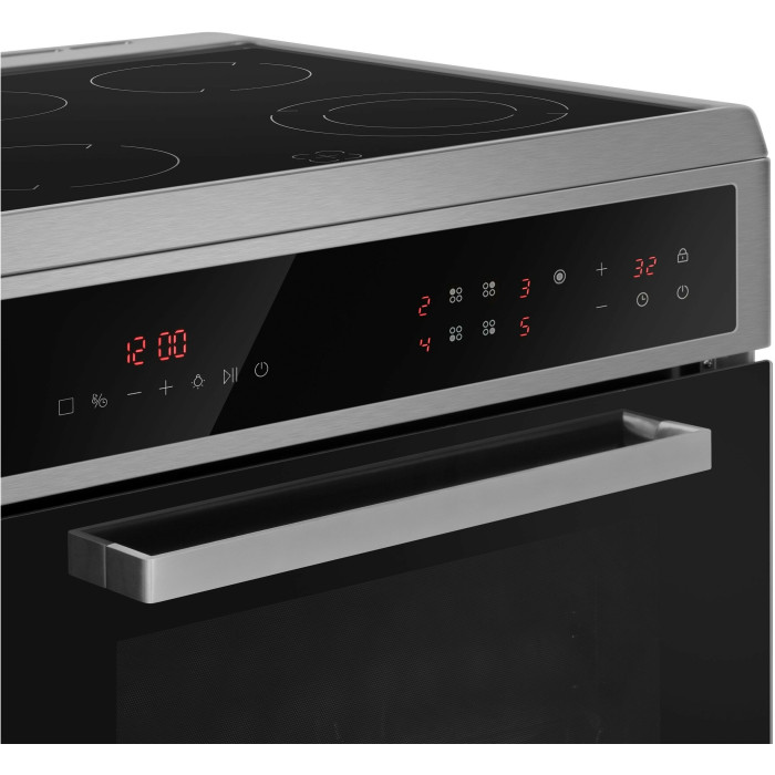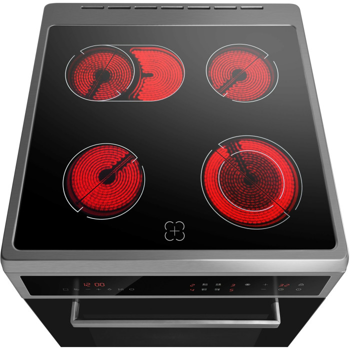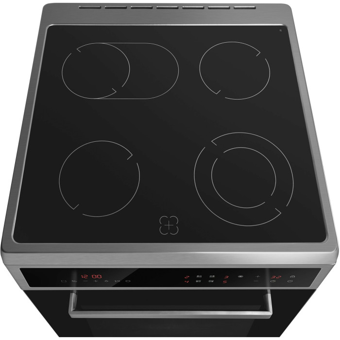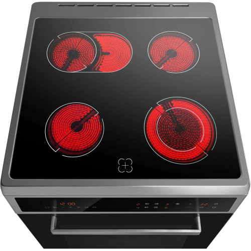тип: электрическая, тип духовки: электрическая, тип варочной панели: электрическая, материал рабочей поверхности: стеклокерамика, ширина: 60 см, глубина: 63 см, конвекция в духовке, гриль, дополнительные функции: таймер, тип таймера: с отключением, безопасность: блокировка панели управления, защитное отключение конфорок, индикатор остаточного тепла, очистка духовки: гидролизная