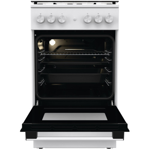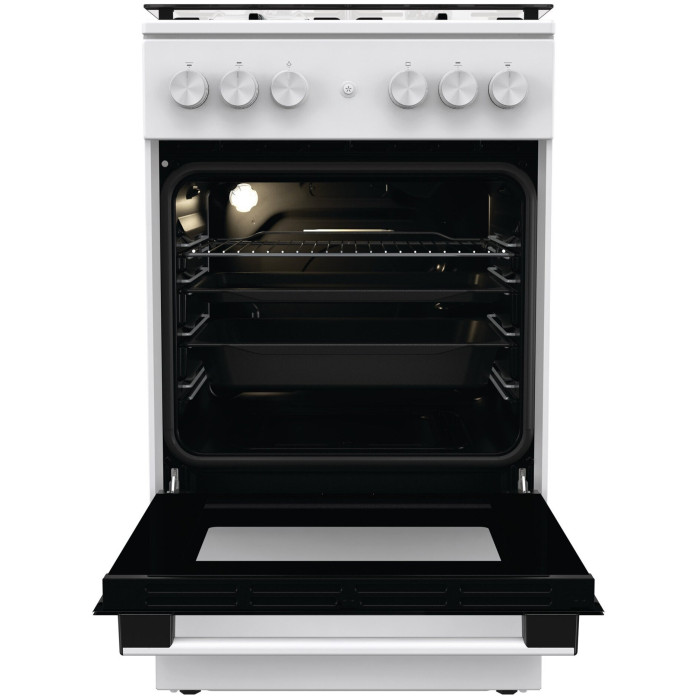 тип: газовая, тип духовки: газовая, тип варочной панели: газовая, материал рабочей поверхности: эмалированная сталь, ширина: 50 см, глубина: 59.40 см, количество конфорок: 4, электроподжиг: варочная поверхность + духовой шкаф, особенности конструкции: подсветка духовки, очистка духовки: традиционная